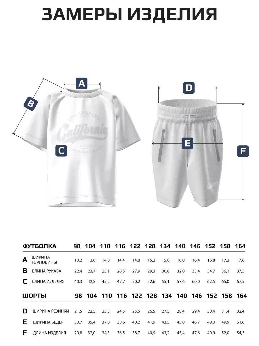 Комплект изготовлен из высококачественного трикотажа, который приятен к телу и хорошо вентилируется. Двойка хороша не только для спорта, но и на каждый день. Футболка и шорты из нашей коллекции станут практичным дополнением к гардеробу каждого юного модника. Одежда незаменима в жаркую погоду на весну и лето. Ее легко стилизовать кедами и бейсболкой и Ваш ребенок будет выглядеть очень модно! Большим преимуществом является отсутствие сложных застежек (пуговиц и замков), что позволяет маленьким детям одеваться самостоятельно. При производстве детских вещей мы используем только гипоаллергенные материалы, которые не вызывают раздражения на чувствительной коже ребенка. Для того чтобы изделие радовало Вас дольше, очень важно соблюдать рекомендации по уходу (бережная стирка при t не более 30С). При выборе размера ориентируйтесь на таблицу мерок в карточке товара.