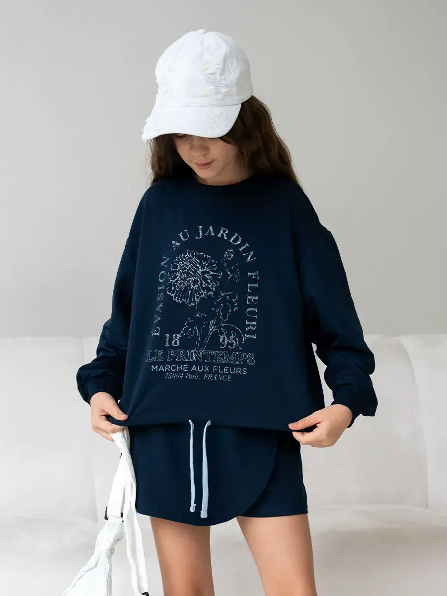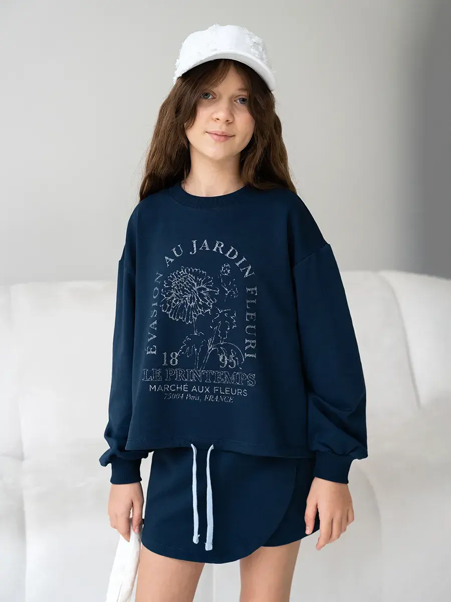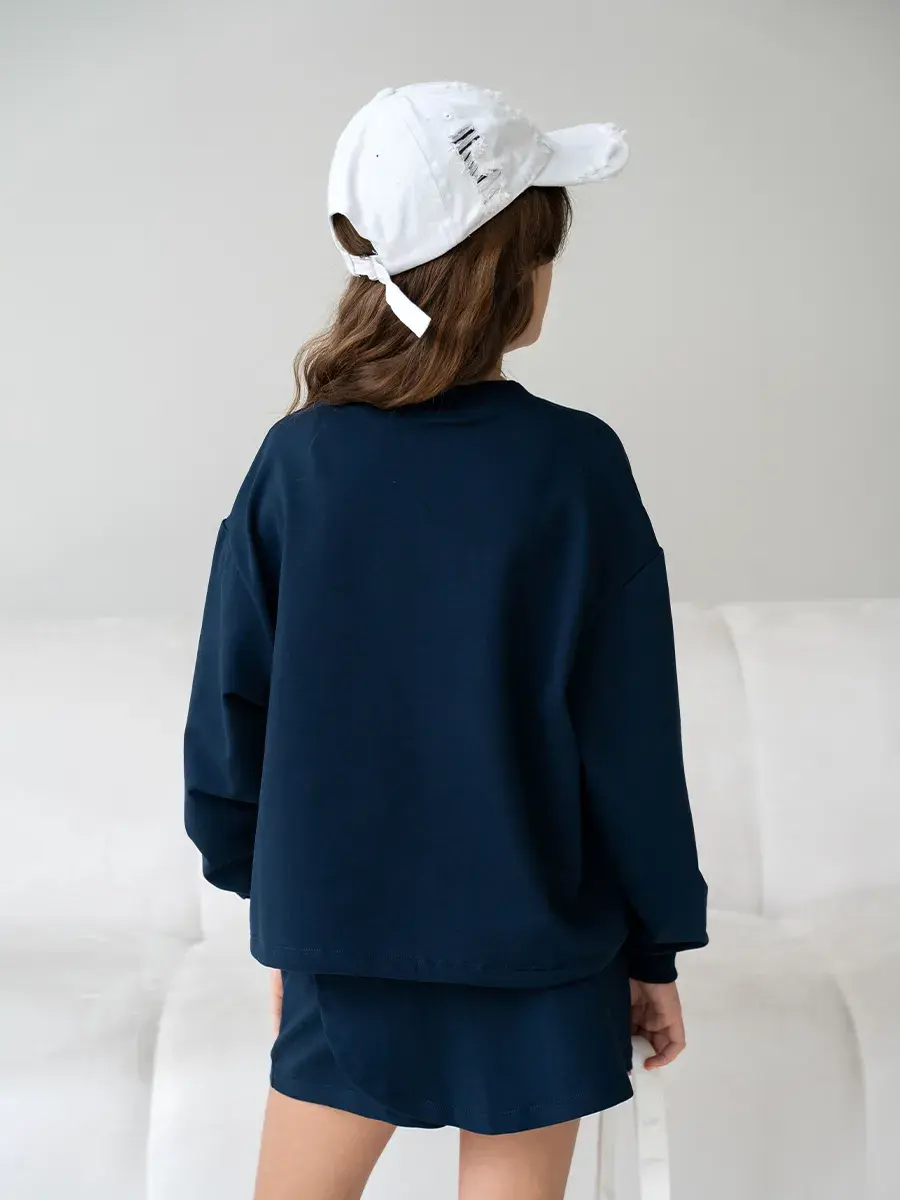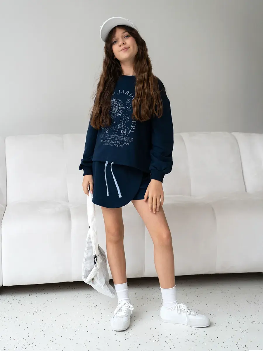LRTT-1538/00-0058718/Свитшот + Юбка-шорты/Темно-синий