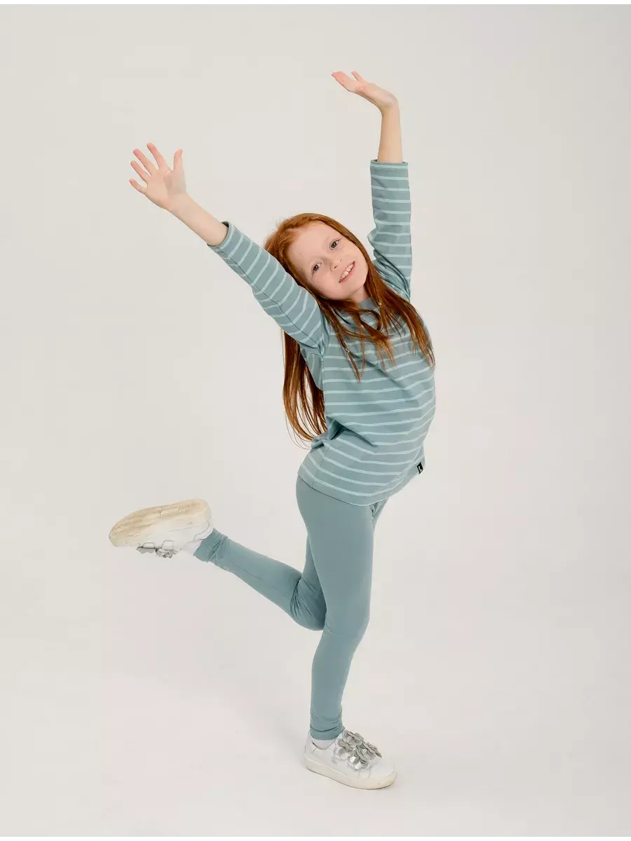 Спортивный костюм для девочек, который сочетает в себе стиль, комфорт и качество. Этот трикотажный детский костюм состоит из удобного лонгслива и модных леггинсов, которые подарят вашей малышке свободу движений в прохладные осенние дни.