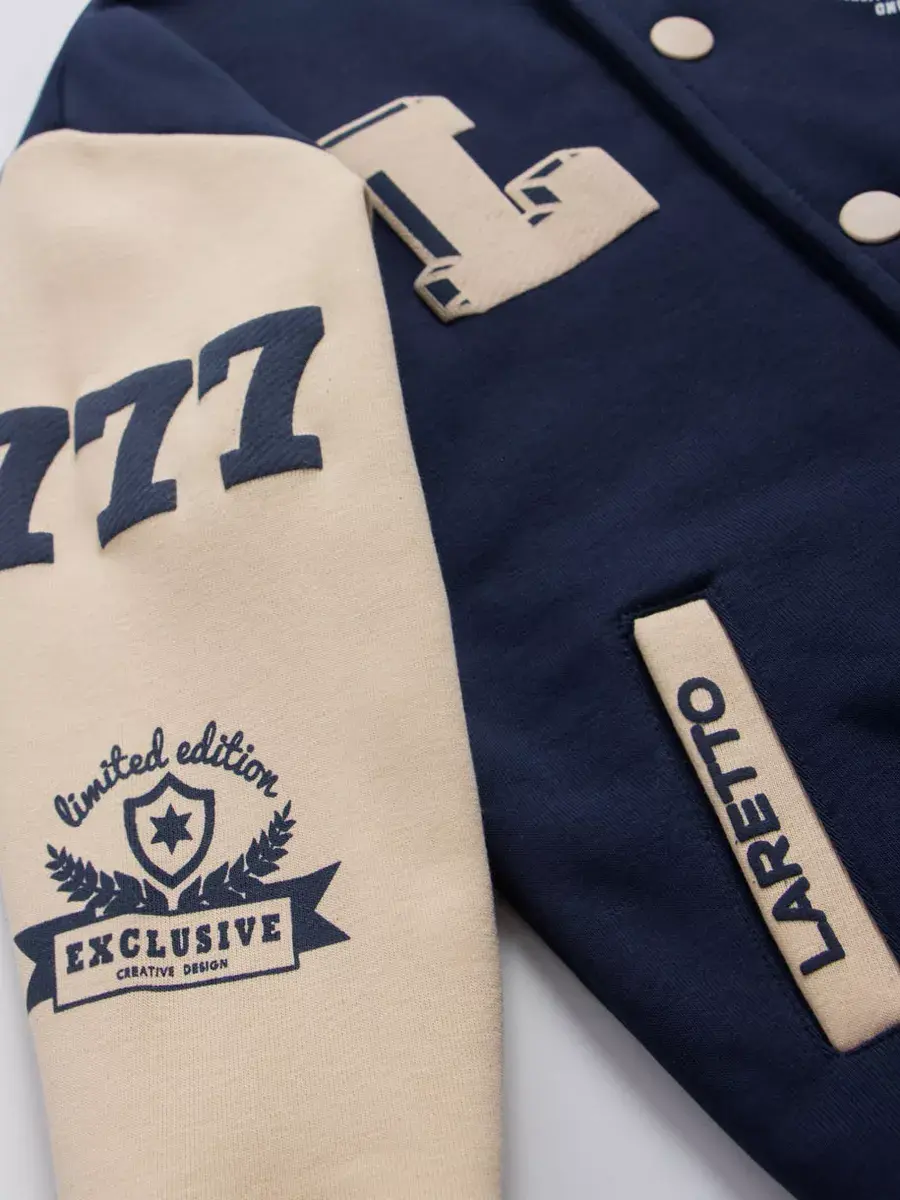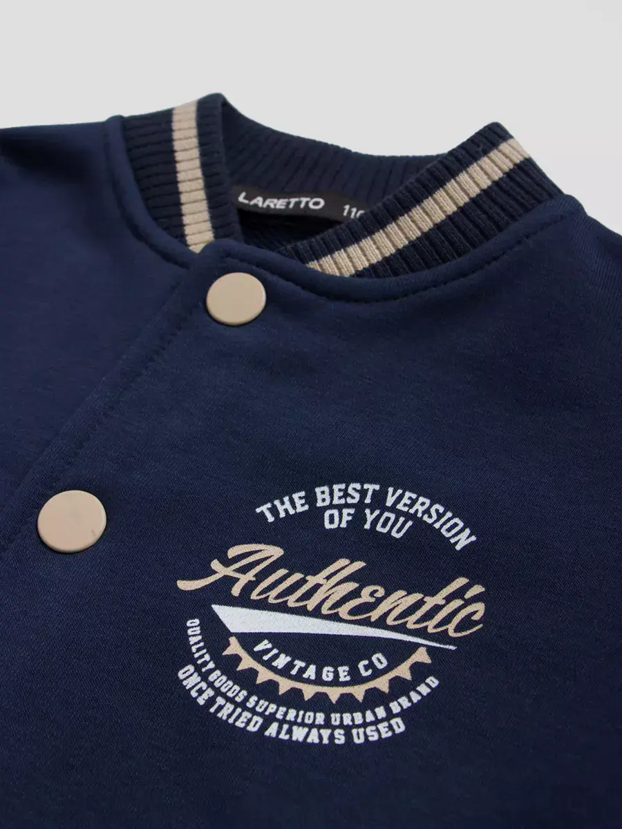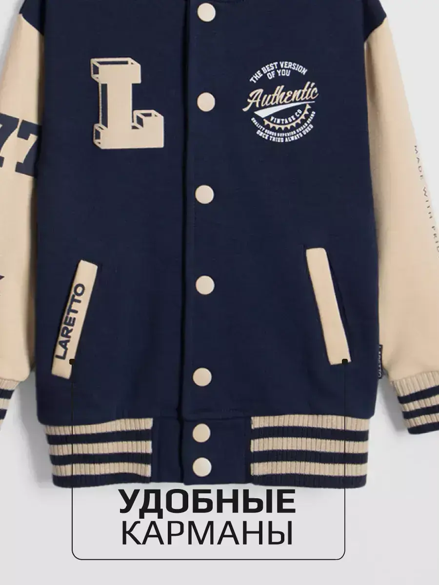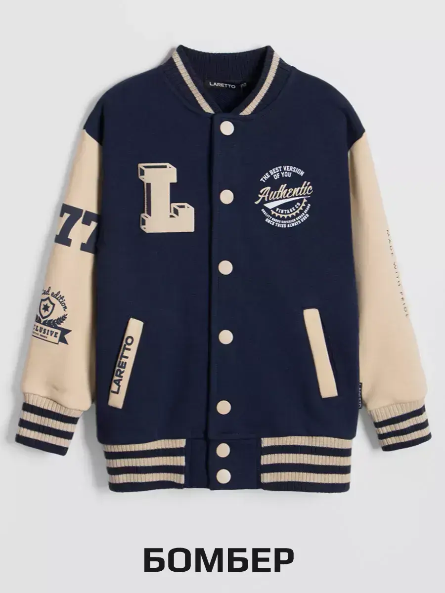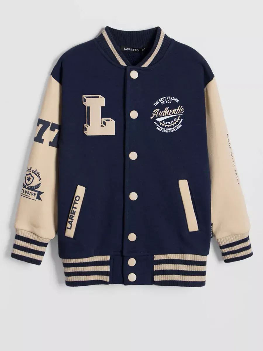 Бомбер для мальчика школьный: Изготовлено из высококачественного материала, который обеспечивает тепло в прохладную погоду. Стильная детская кофта на кнопках украшена ярким принтом и надписями, добавляя игривости в образ.