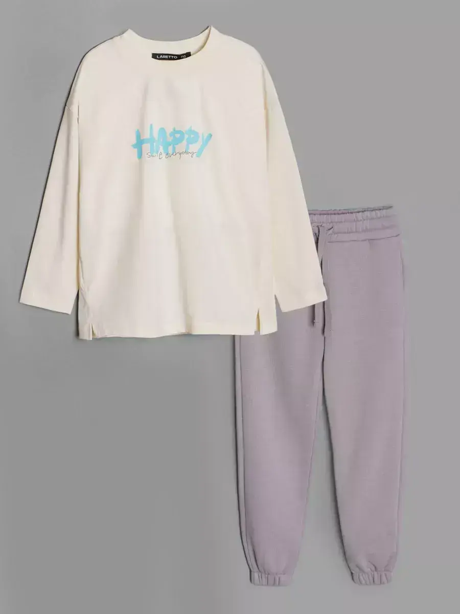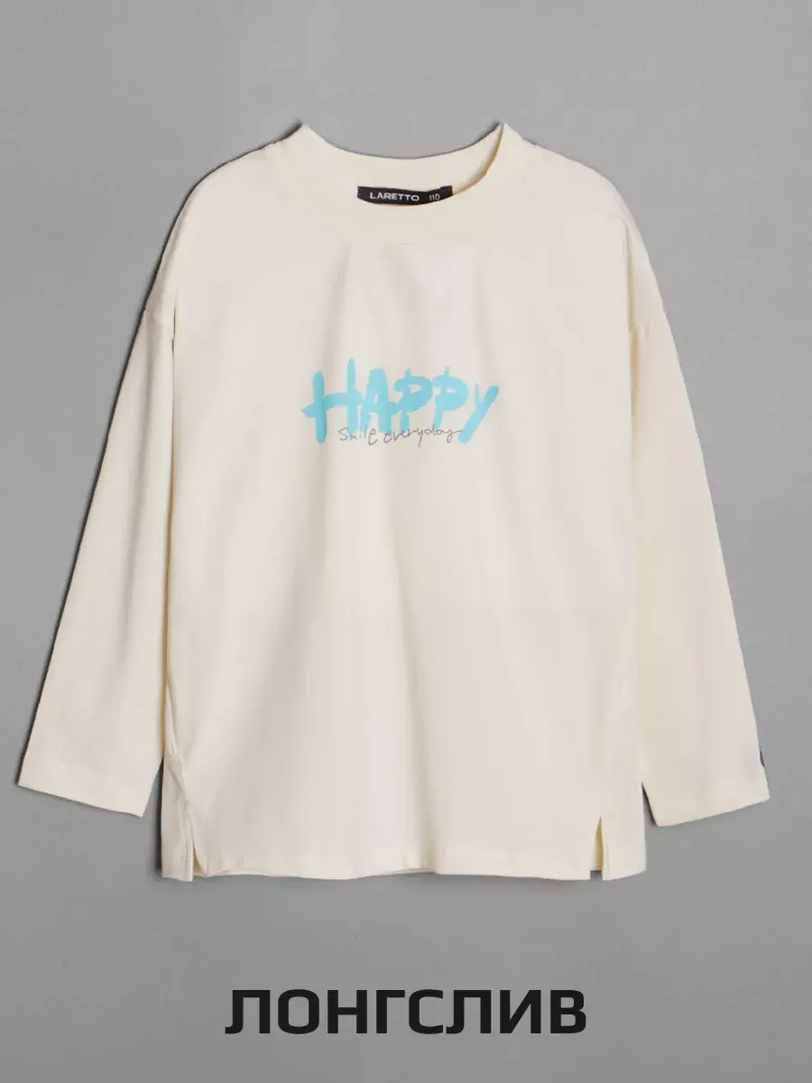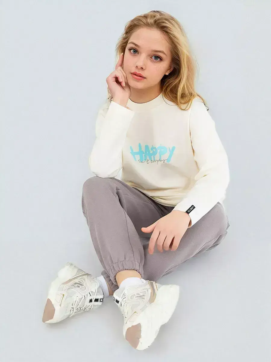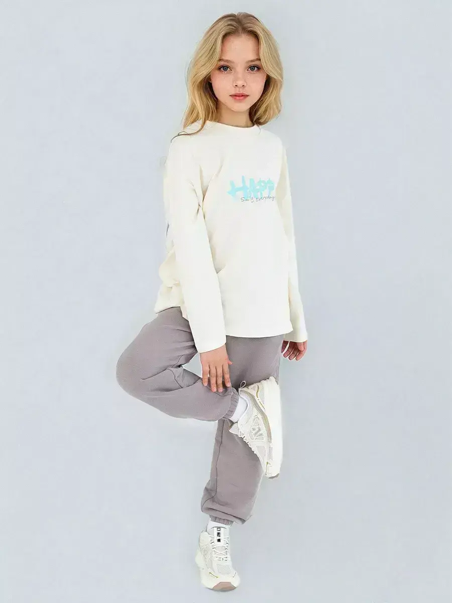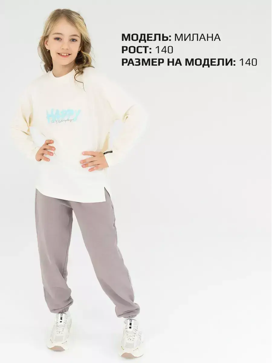 Он идеален для подростков, которые ценят комфорт и свободу движений. Лонгслив для девочек оверсайз выполнен из качественного хлопка. Уникальный дизайн с разрезами по бокам и яркий рисунок подчеркнет индивидуальность и бунтарский нрав своей обладательницы. Однотонные брюки из футера 2-х нитки хорошо садятся на любой тип фигуры. Спортивные штаны джоггеры для девочки отлично сочетаются с любым верхом, например худи или футболкой.
