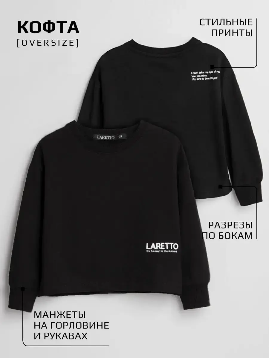 Свитшот для девочек - изготовлен из высококачественного хлопка, который обеспечивает максимальный комфорт и долговечность. Мягкий на ощупь материал не вызывает раздражения кожи и позволяет телу “дышать”, что особенно важно для активных детей. Дизайн детского лонгслива предусматривает удлиненную посадку и рукава на манжетах, что добавляет изделию стильности и практичности.