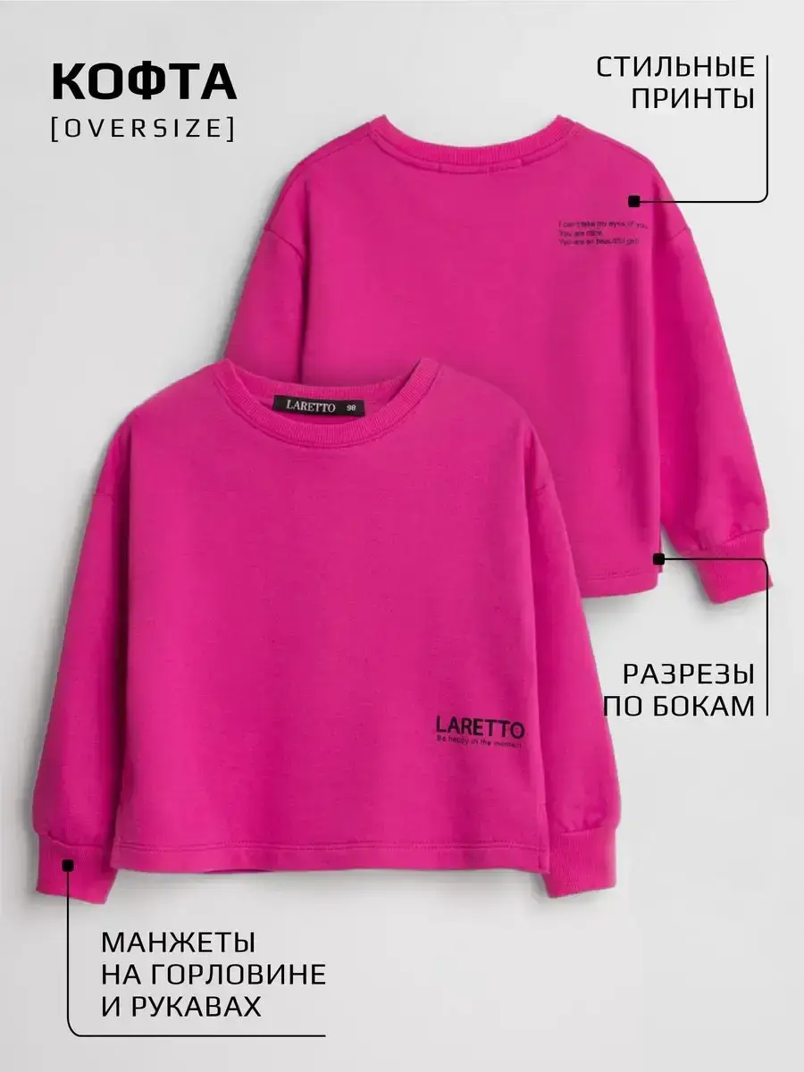 Свитшот для девочек - изготовлен из высококачественного хлопка, который обеспечивает максимальный комфорт и долговечность. Мягкий на ощупь материал не вызывает раздражения кожи и позволяет телу “дышать”, что особенно важно для активных детей. Дизайн детского лонгслива предусматривает удлиненную посадку и рукава на манжетах, что добавляет изделию стильности и практичности.