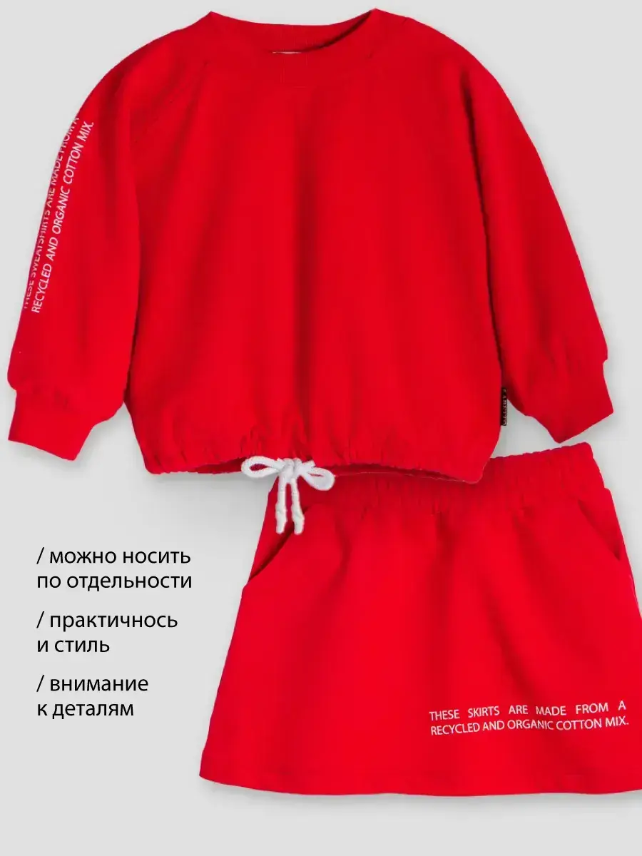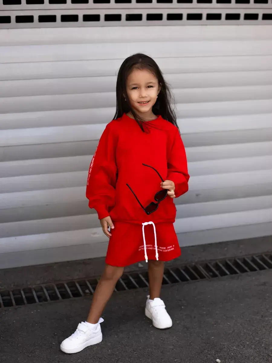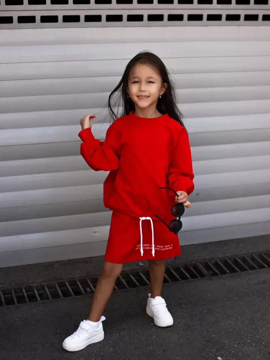 Спортивный костюм для девочек, который сочетает в себе стиль, комфорт и качество. Этот трикотажный детский костюм состоит из удобной толстовки для девочек и модной юбки, которые подарят вашей малышке свободу движений в прохладные осенние дни.