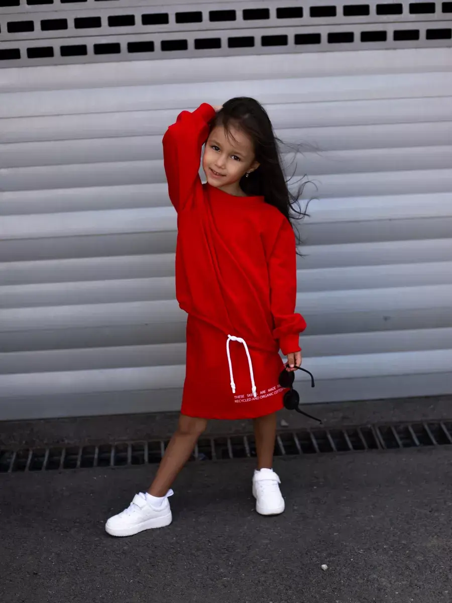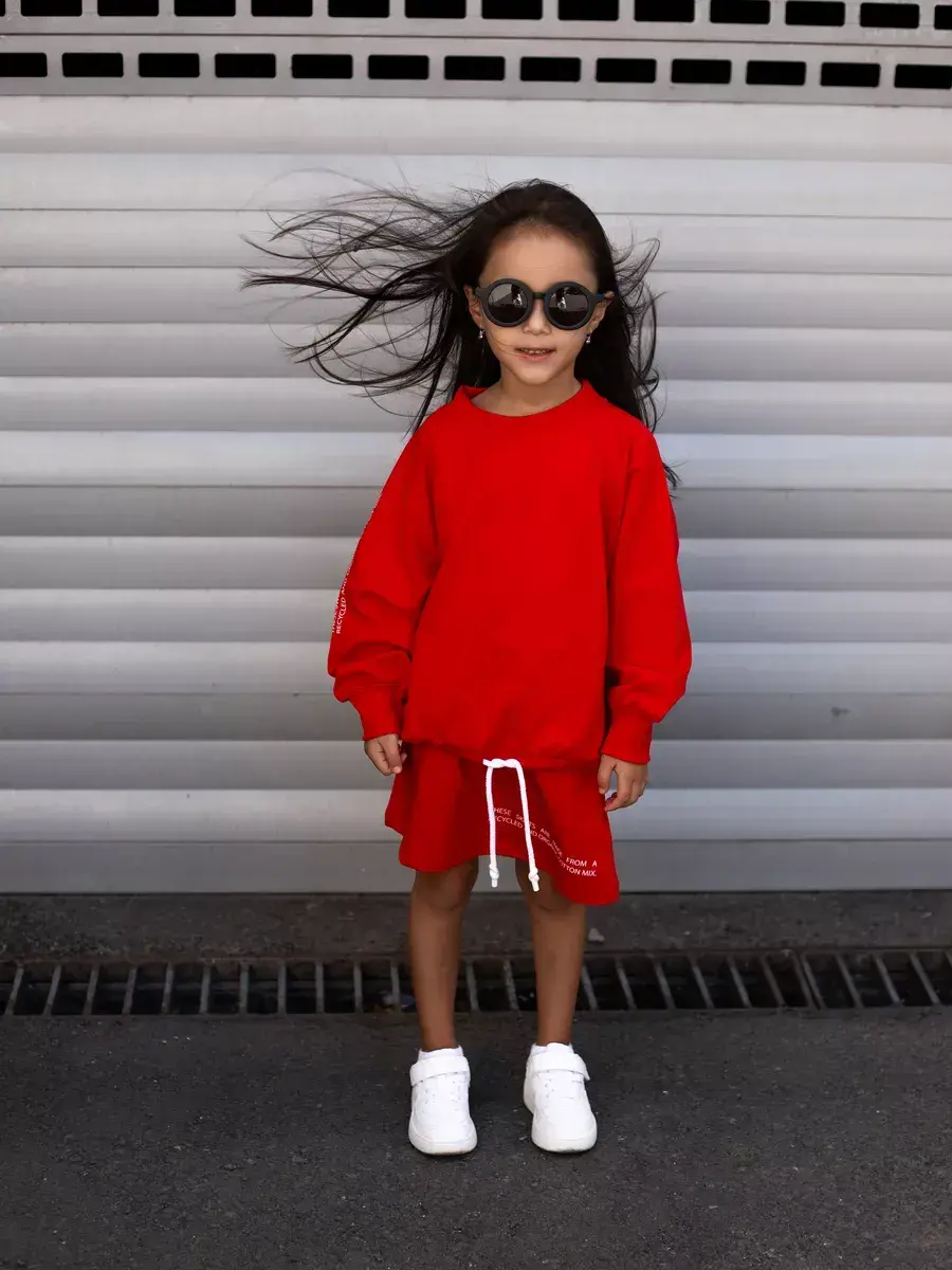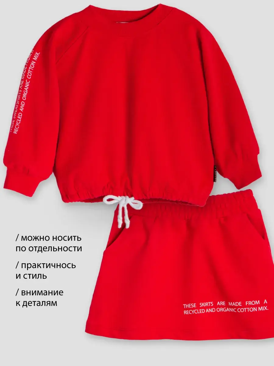 Спортивный костюм для девочек, который сочетает в себе стиль, комфорт и качество. Этот трикотажный детский костюм состоит из удобной толстовки для девочек и модной юбки, которые подарят вашей малышке свободу движений в прохладные осенние дни.