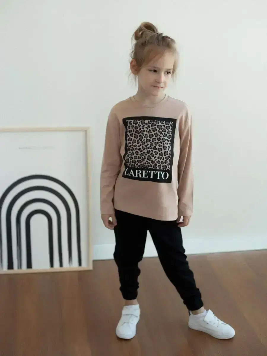 Спортивный костюм для девочек в школу, который сочетает в себе стиль, комфорт и качество. Этот трикотажный детский костюм состоит из удобного лонгслива и модных джоггеров, которые подарят вашей малышке свободу движений в прохладные осенние дни.