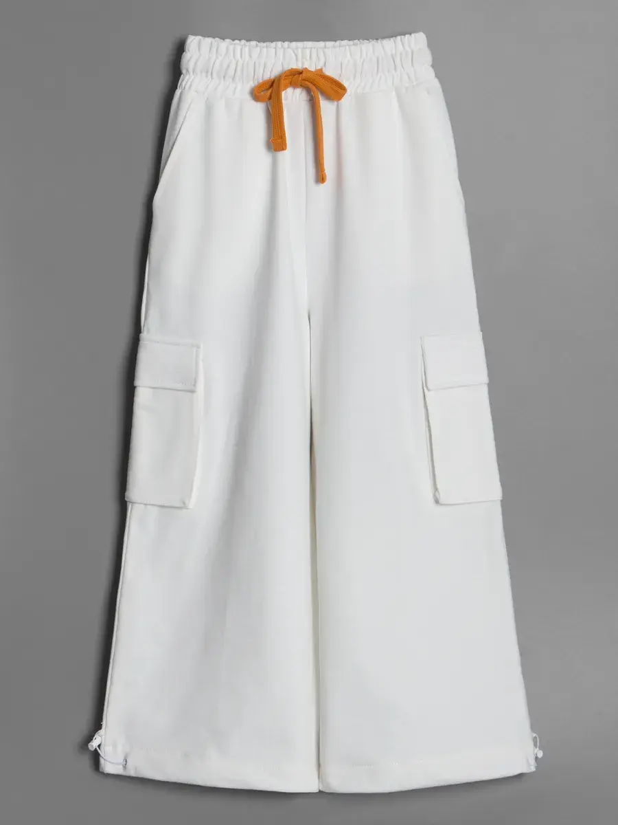 Белые брюки палаццо для девочек - выполнены основе натурального хлопка. Широкий пояс на резинке не сдавливает животик ребенка и обеспечивает надежную фиксацию на талии. Расширенные от бедра к низу придают образу оригинальность и следуют последним модным тенденциям.