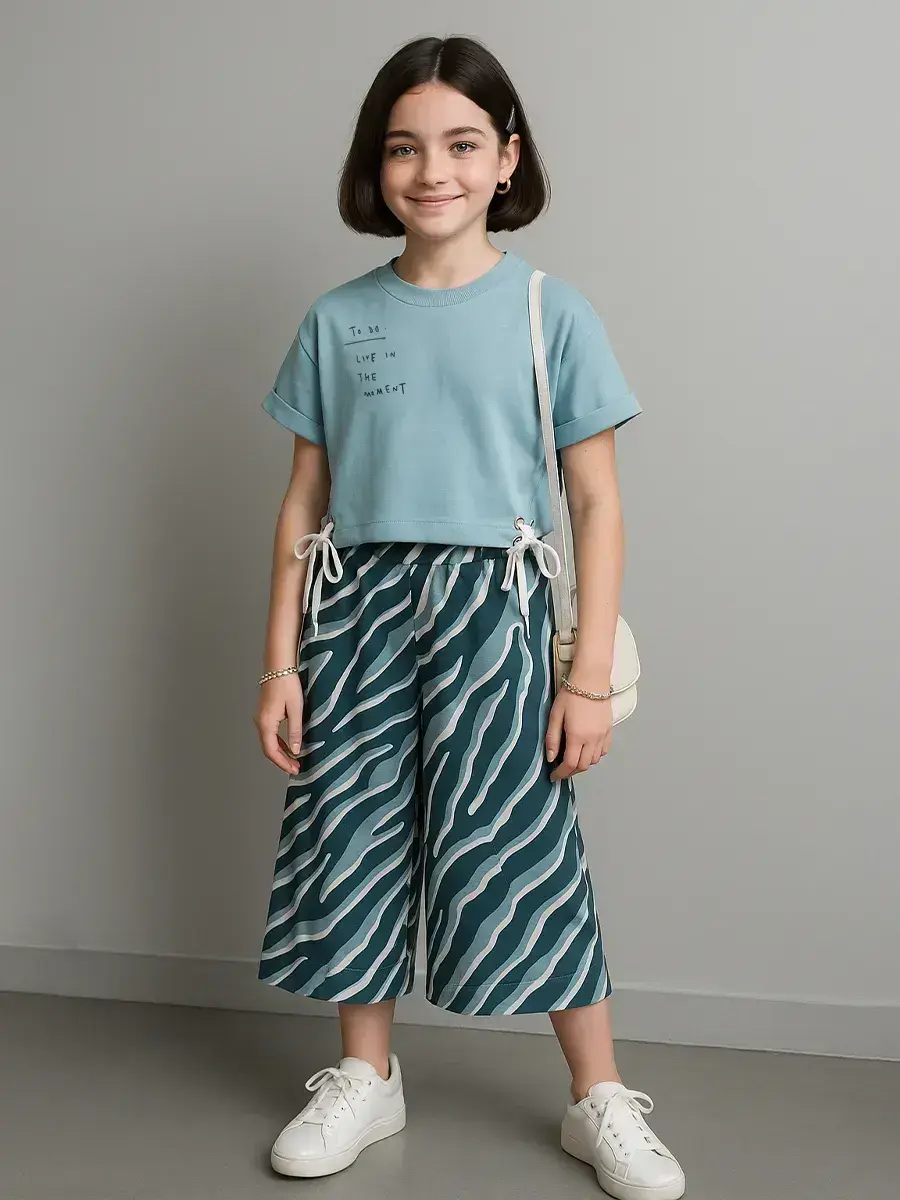 Комбинируйте футболку и кюлоты с другой одеждой и аксессуарами, чтобы создать уникальный и неповторимый образ для вашей девочки.