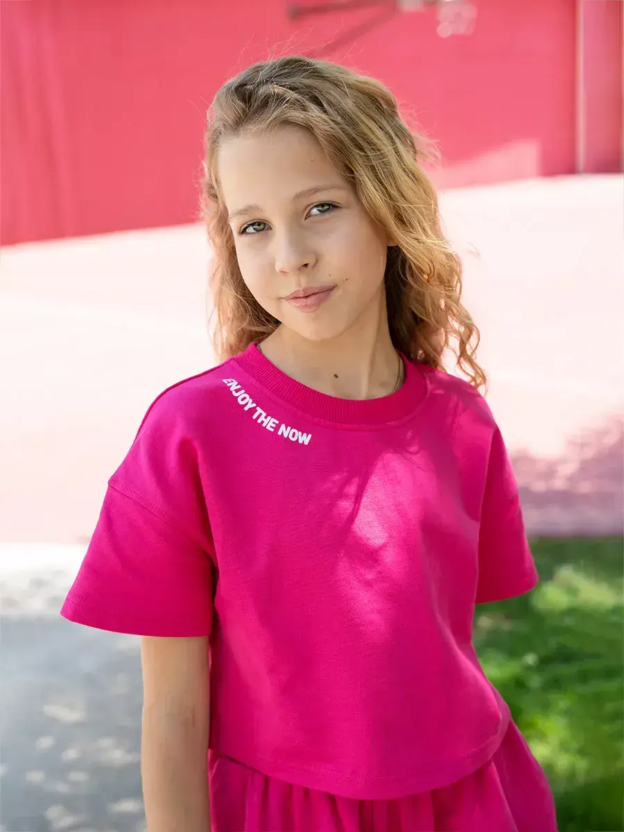 Футболка для девочек: Легкий и воздушный, выполнен из качественного материала, который обеспечивает комфортное ношение даже в самые жаркие летние дни. Благодаря эластичной ткани топ не сковывает движения, позволяя ребенку чувствовать себя свободно. Дизайн предусматривает яркие цвета или узоры, которые несомненно понравятся молодым любительницам моды.