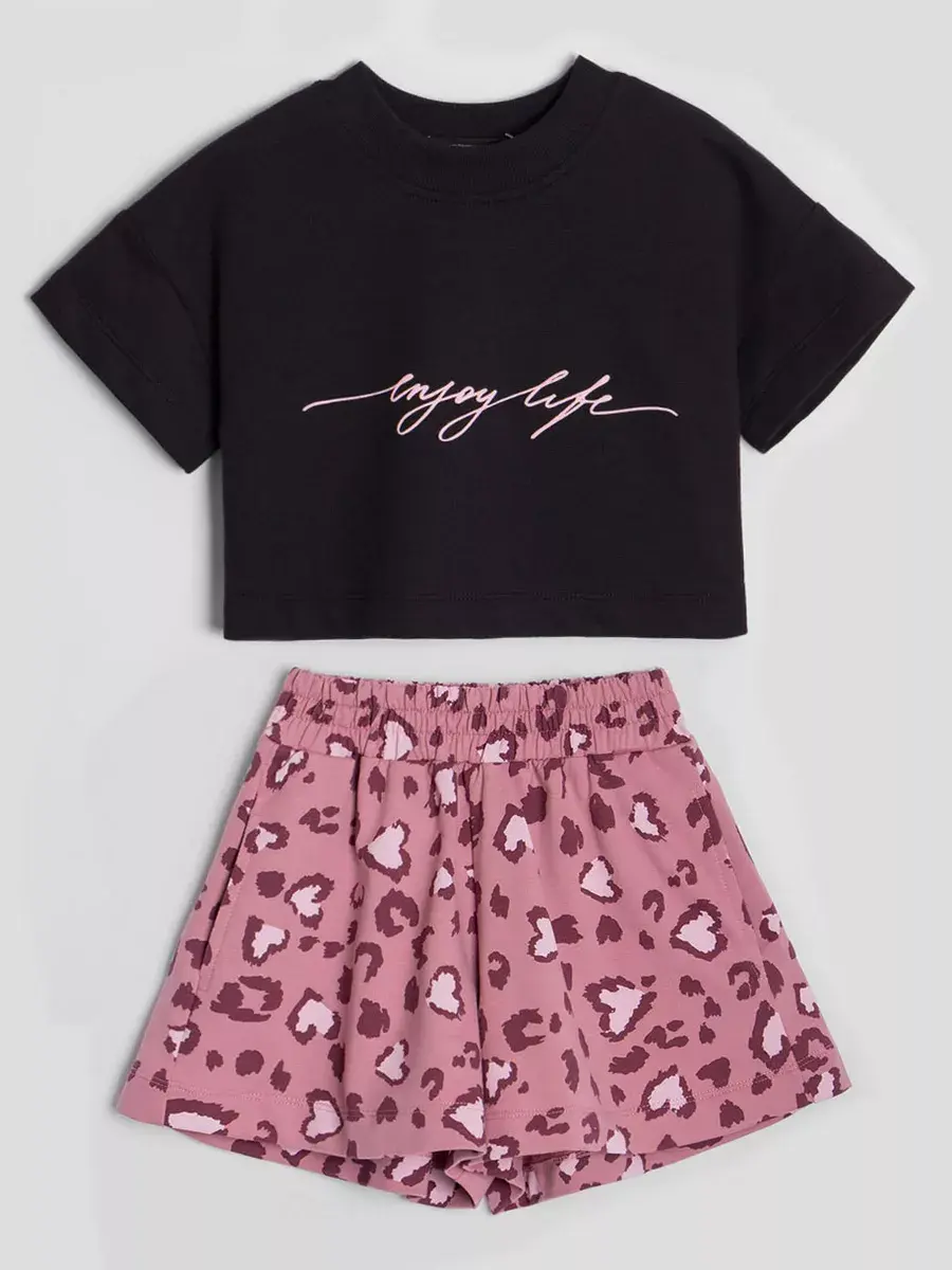 Яркие цвета и современный дизайн делают этот костюм для девочки стильным решением для любого гардероба. Шорты легко комбинируются с разными вещами, позволяя создавать модные образы.