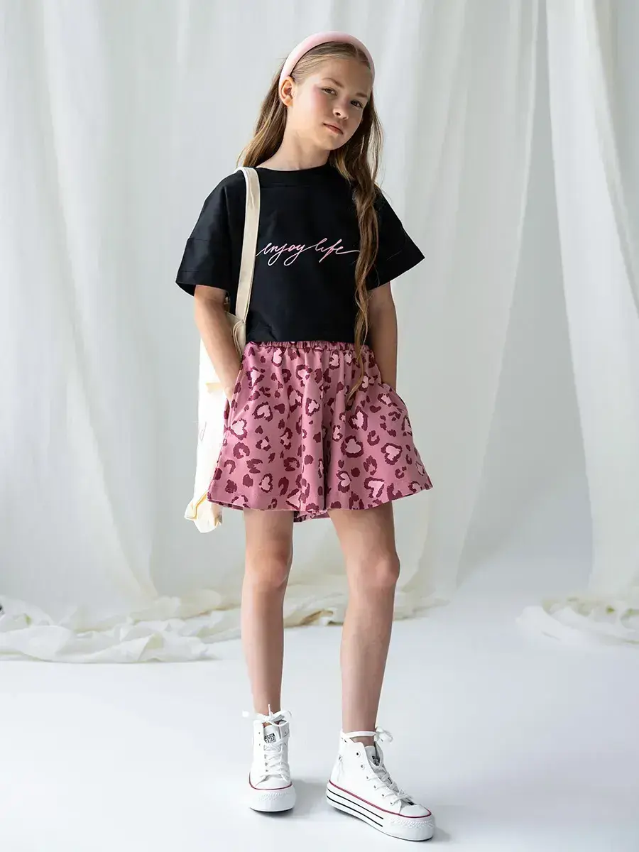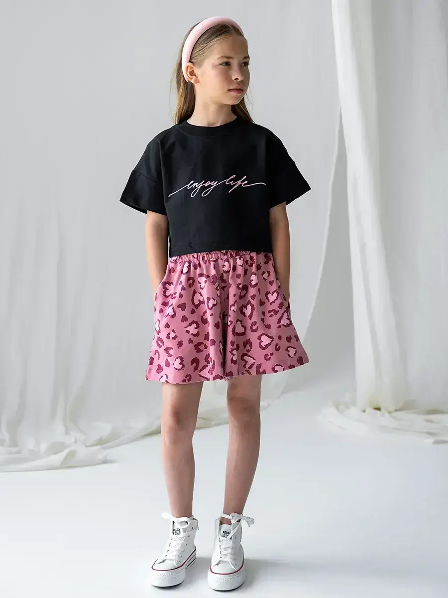 Костюм детский станет отличным вариантом как для прогулок в садик, так и для спортивных мероприятий. Широкие шорты обеспечивают свободу движений, а укороченная футболка добавляет легкости. Летний костюм для девочки подростка идеально подходит для повседневной носки, обеспечивая комфорт и свободу движений.