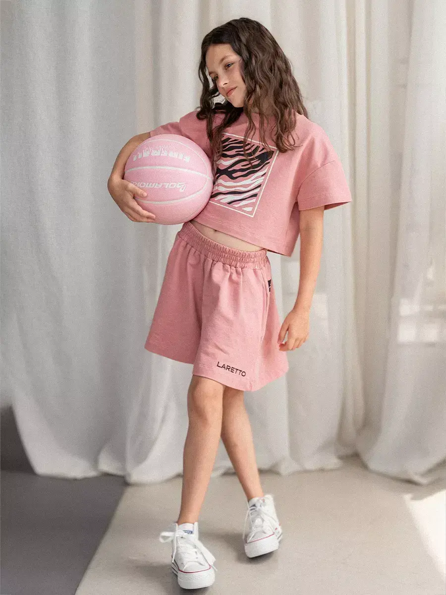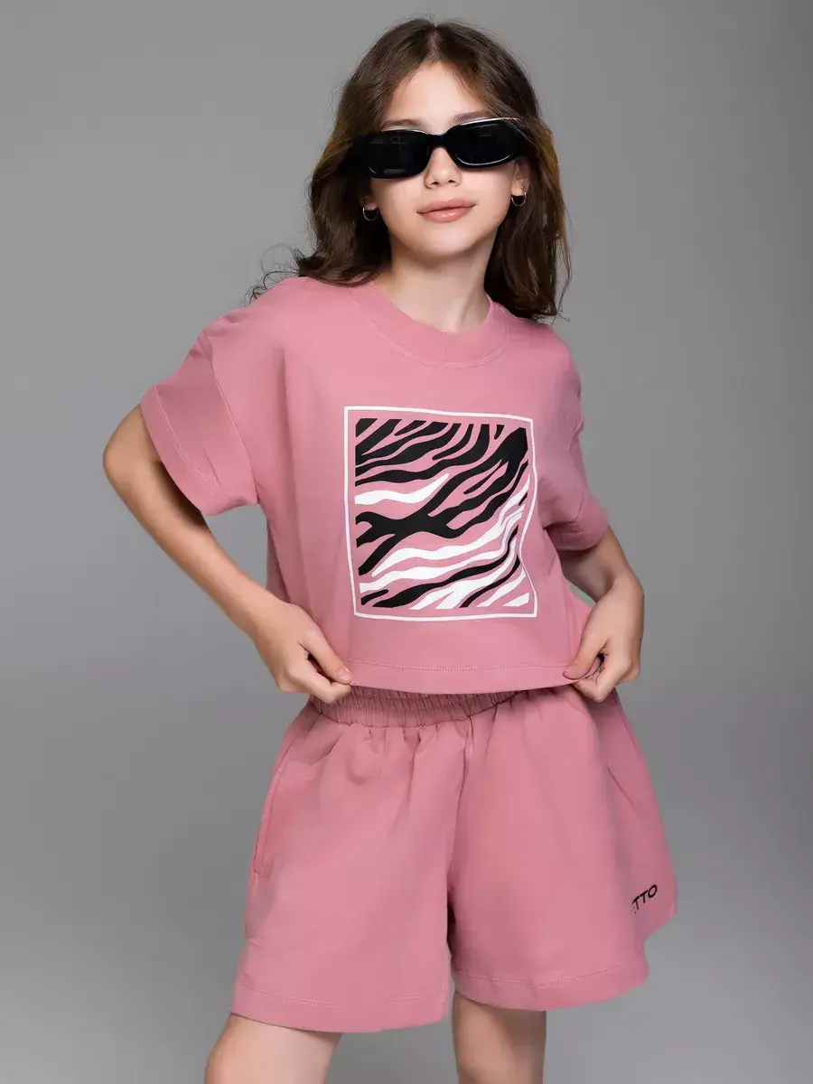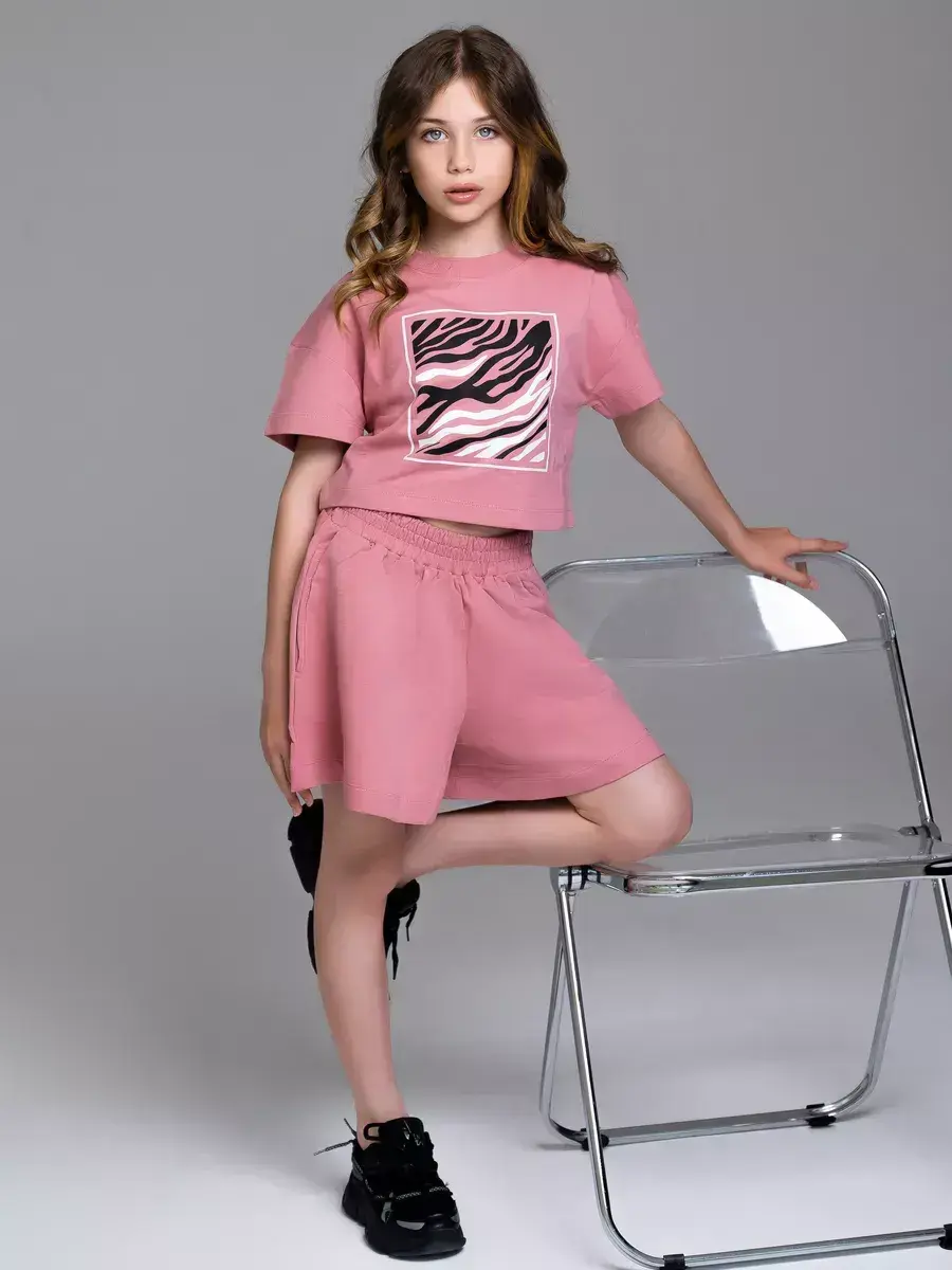 LRTT-675_/_00-0031919 _/_Футболка + шорты_сухая роза_/_Девочки