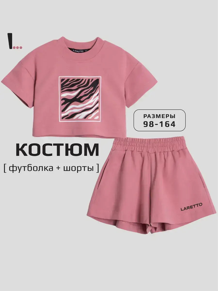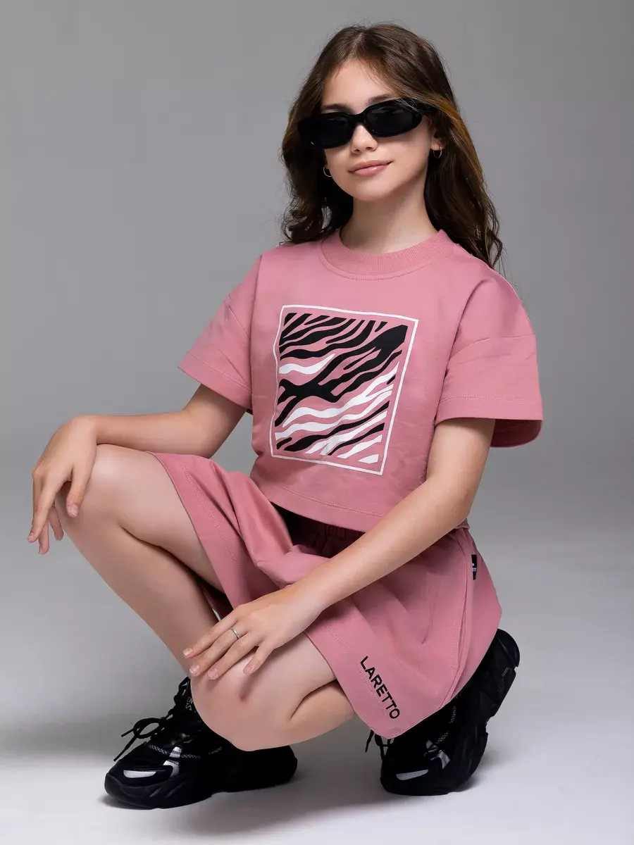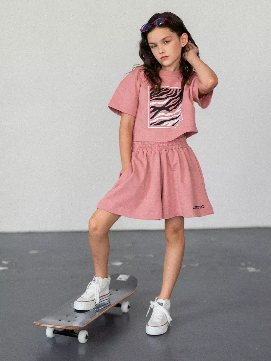 LRTT-675_/_00-0031919 _/_Футболка + шорты_сухая роза_/_Девочки