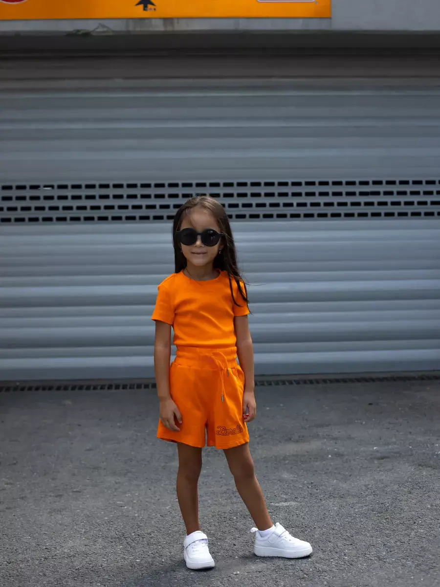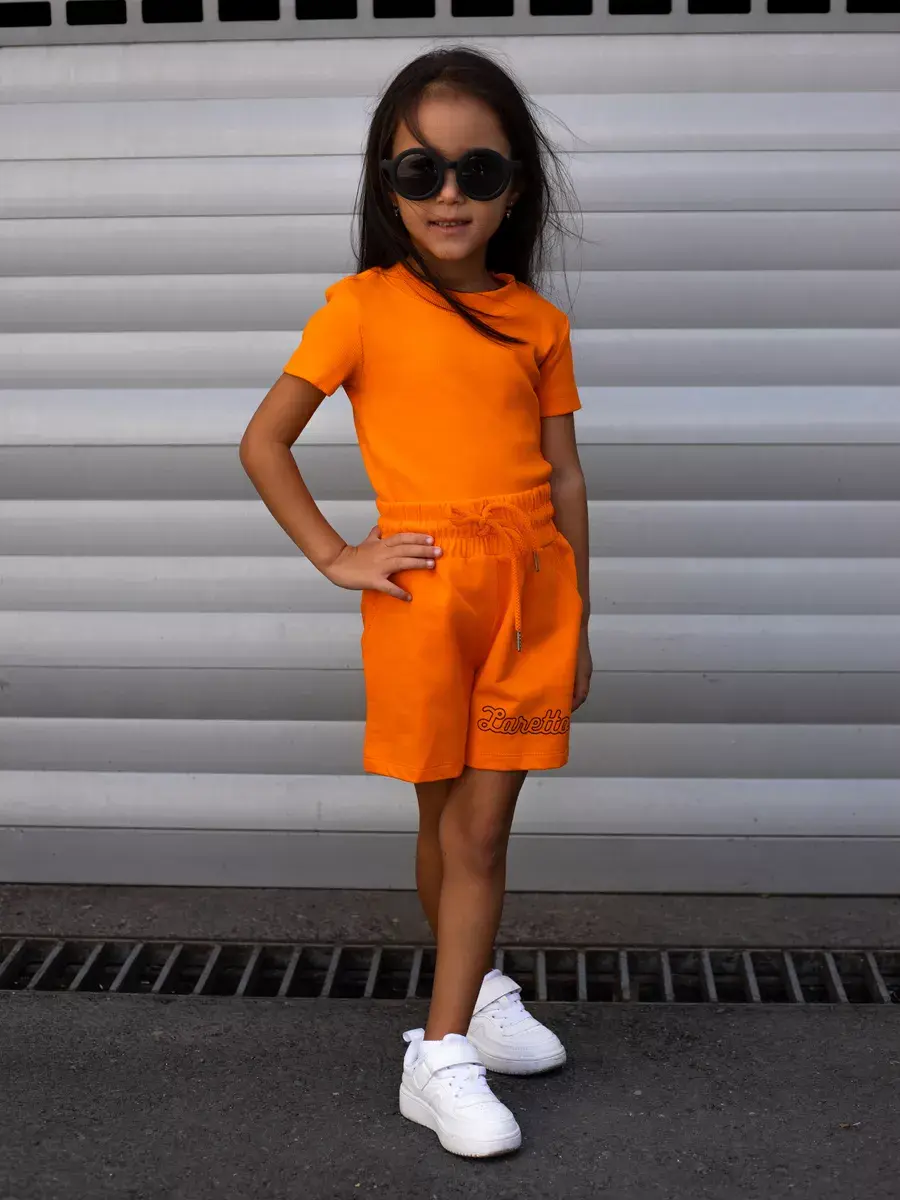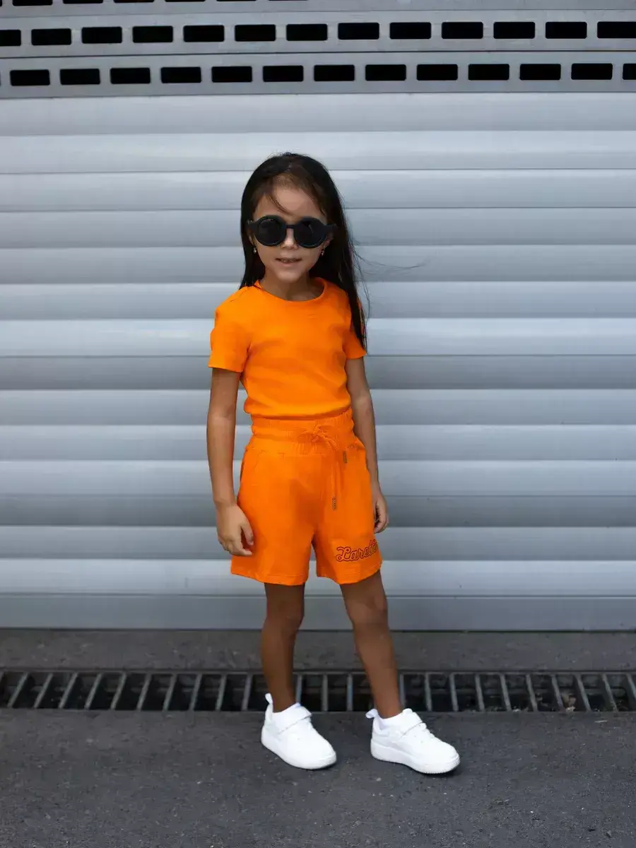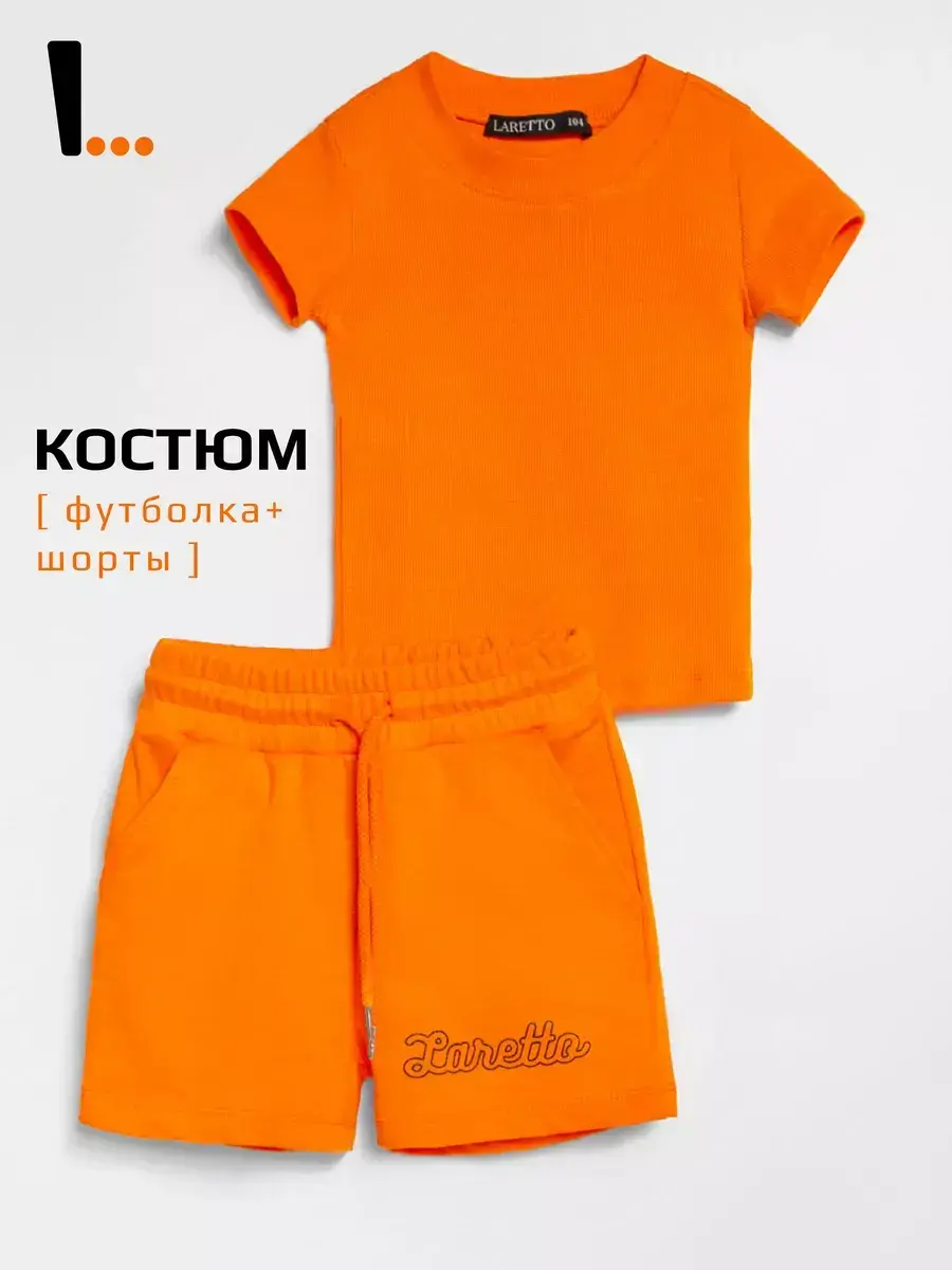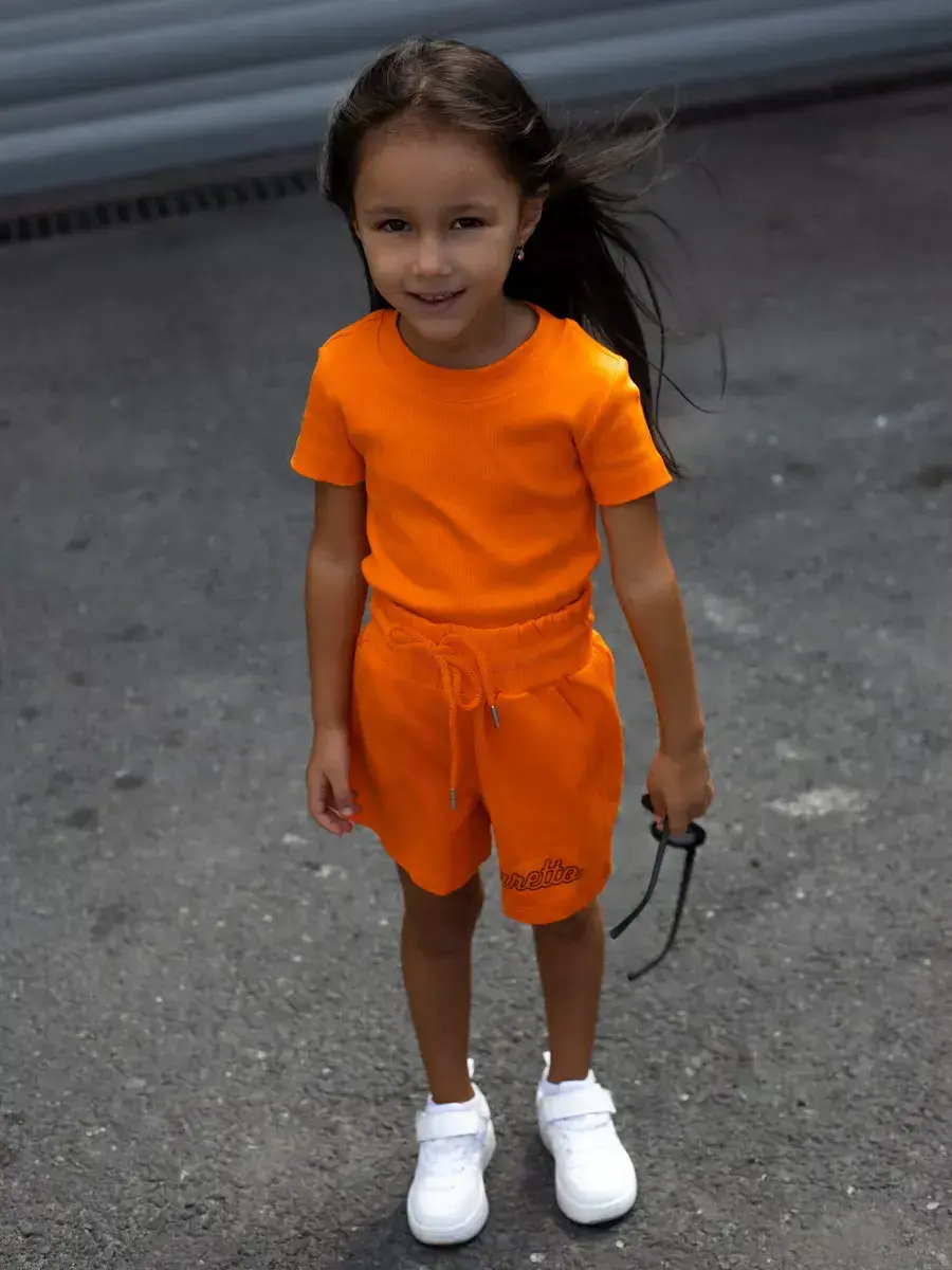 Костюм для девочек включает в себя модную футболку и комфортные шорты, которые подойдут как для активного отдыха, так и для повседневной носки. Идеально подходит для маленьких модниц и юных спортсменок.