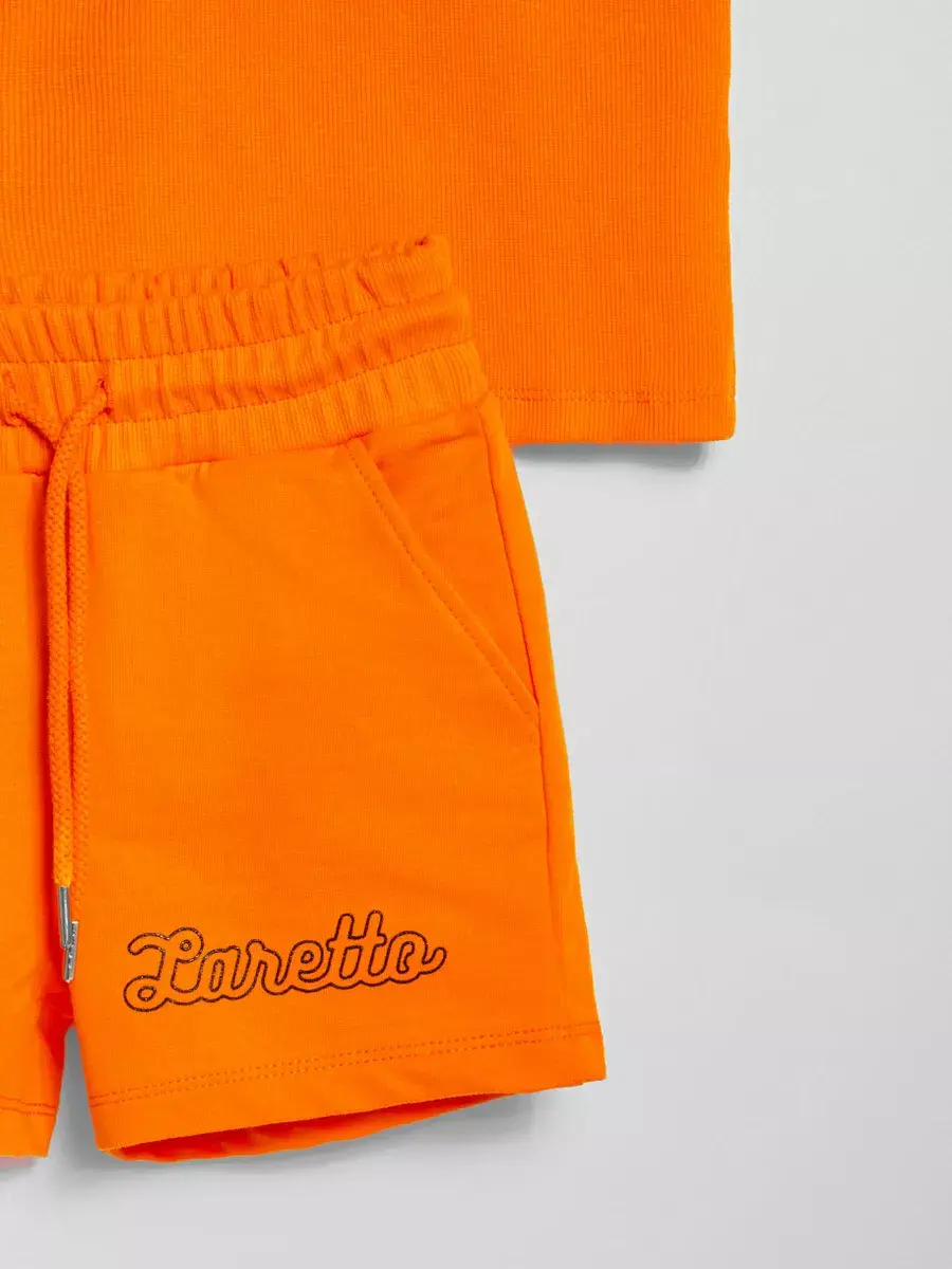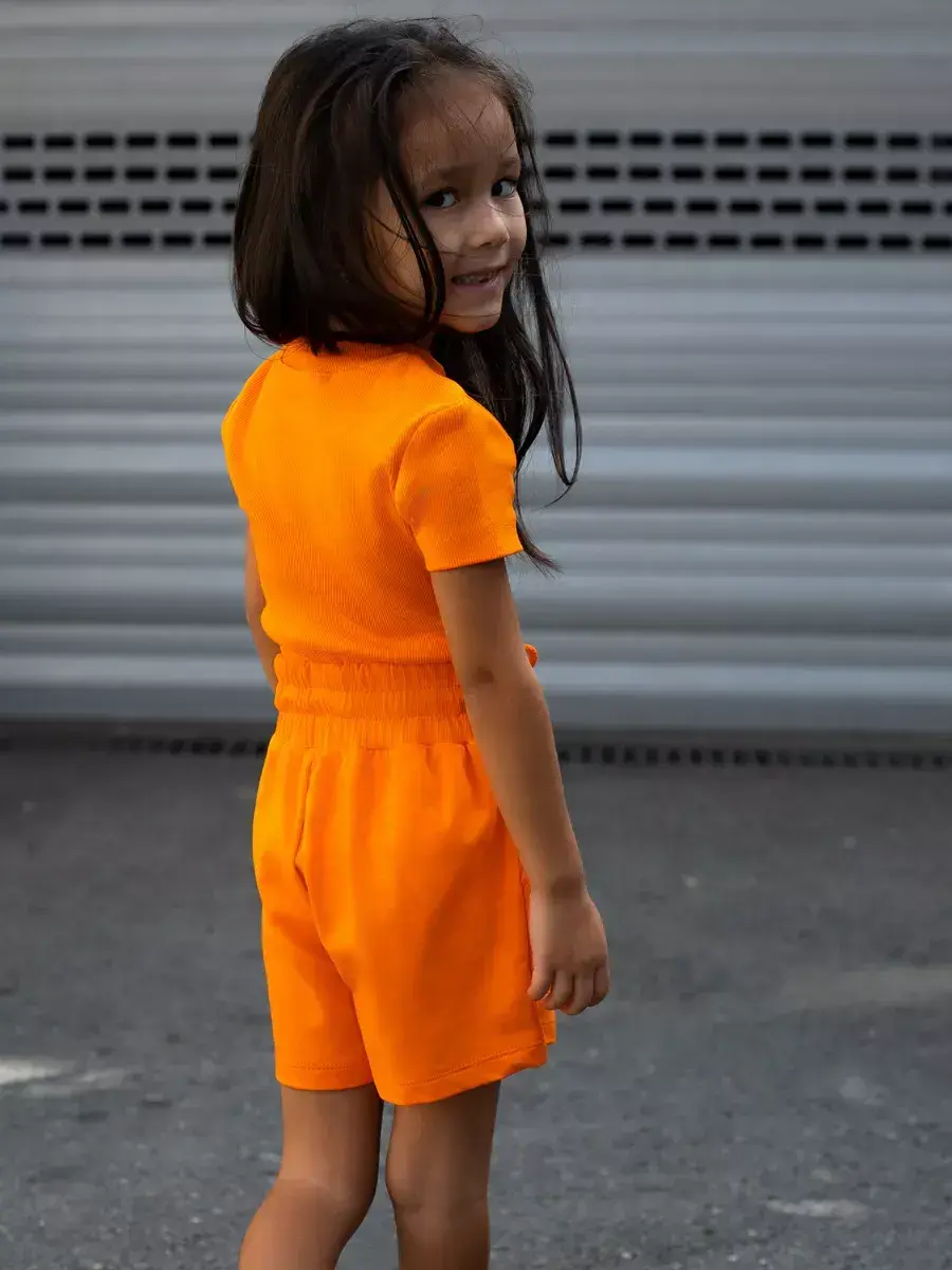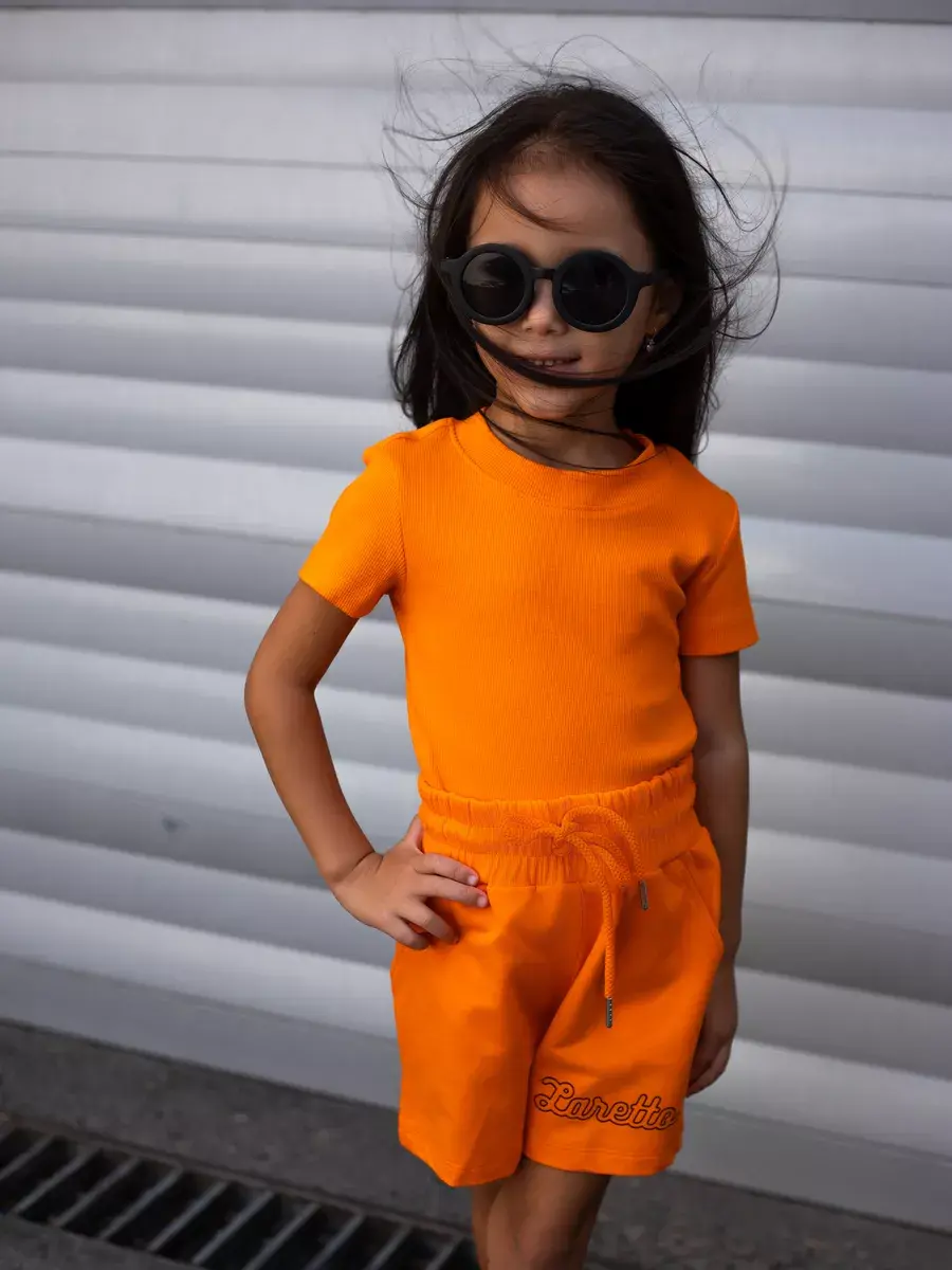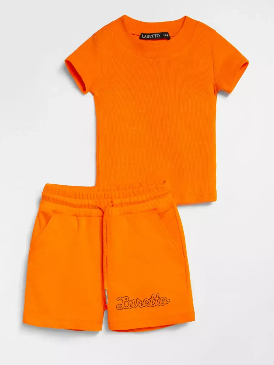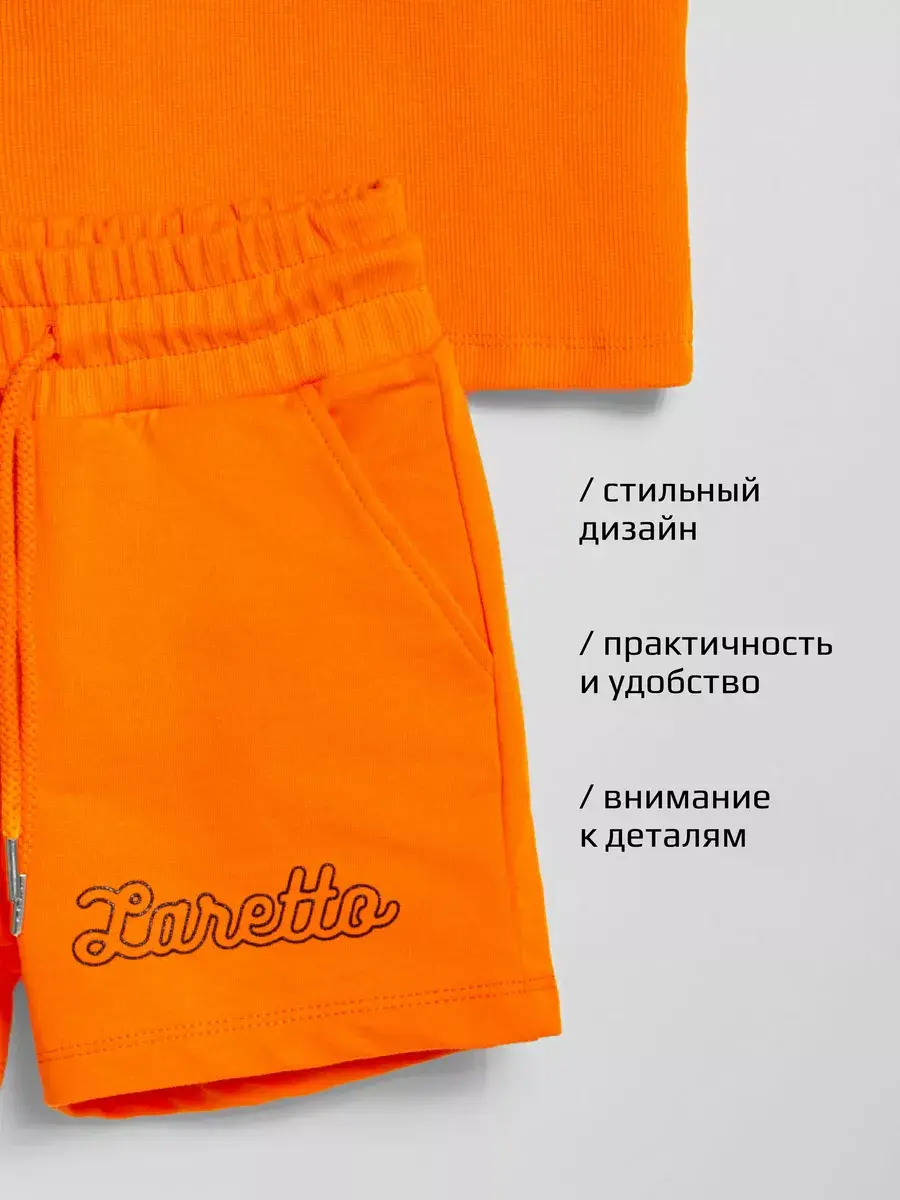 Костюм для девочек включает в себя модную футболку и комфортные шорты, которые подойдут как для активного отдыха, так и для повседневной носки. Идеально подходит для маленьких модниц и юных спортсменок.