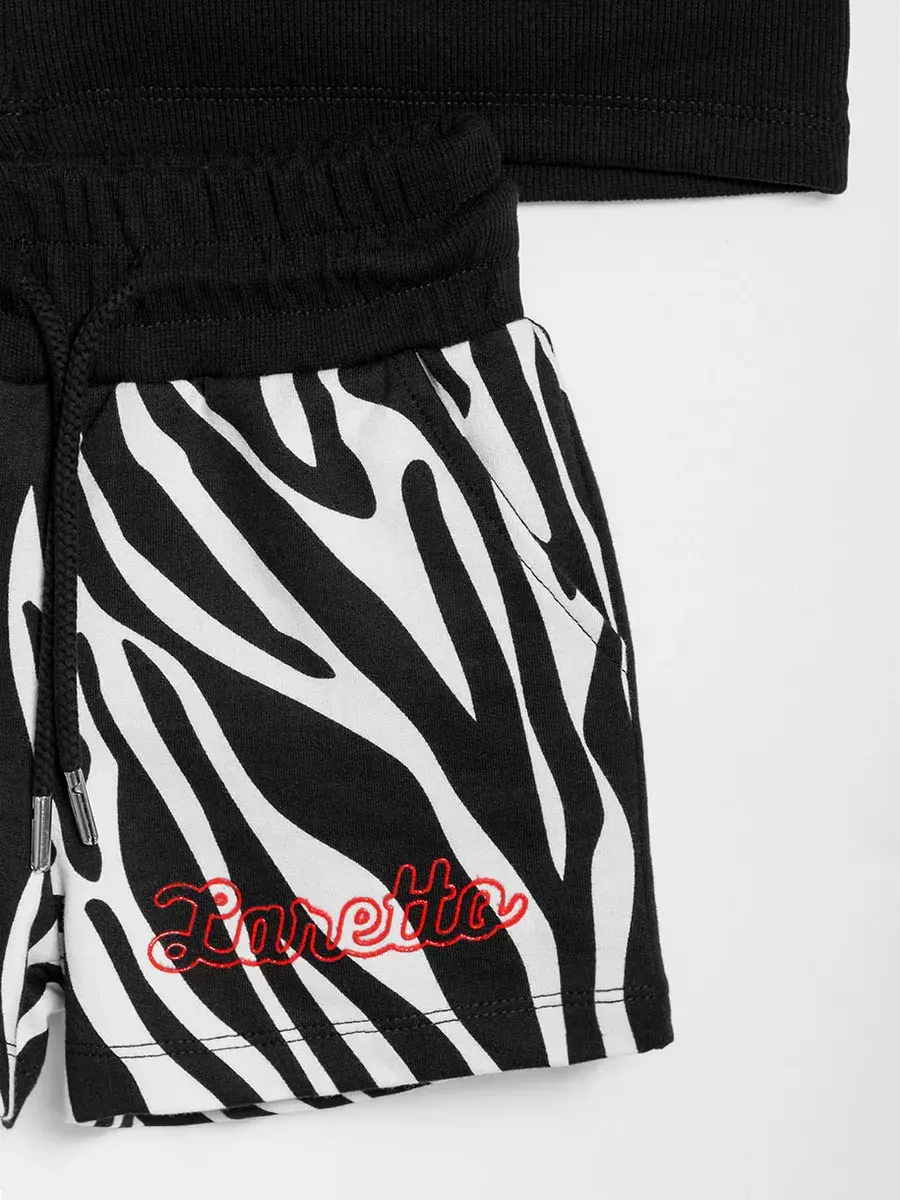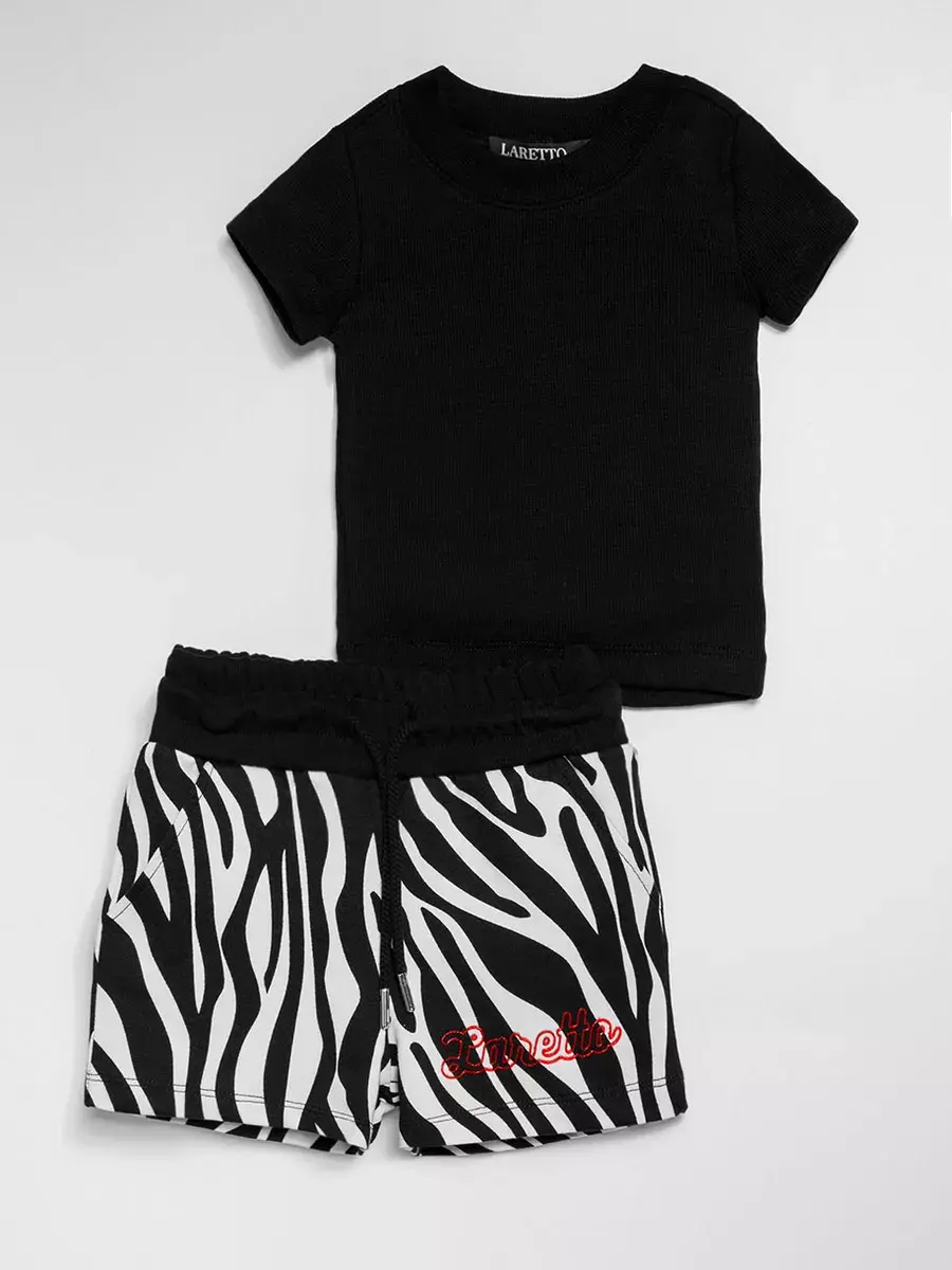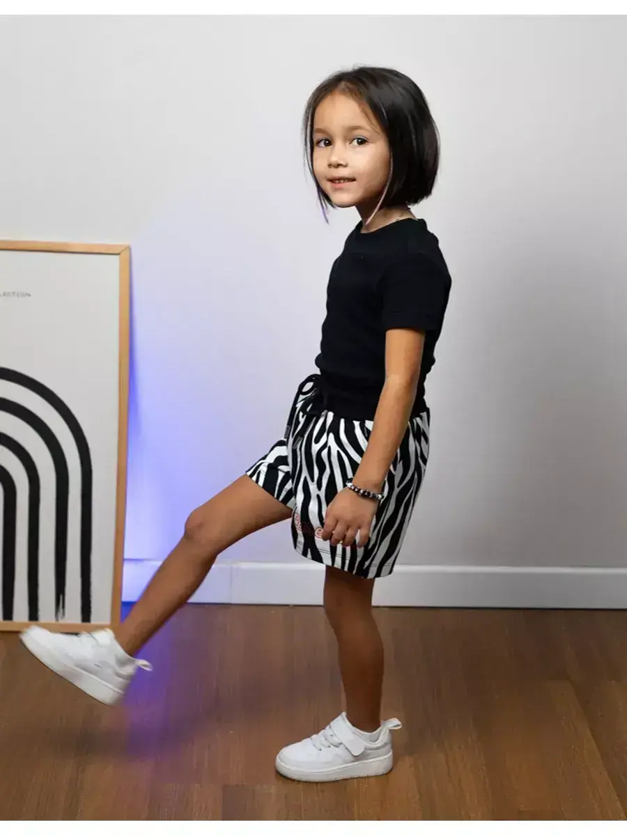 Костюм для девочек включает в себя модную футболку и комфортные шорты, которые подойдут как для активного отдыха, так и для повседневной носки. Идеально подходит для маленьких модниц и юных спортсменок.