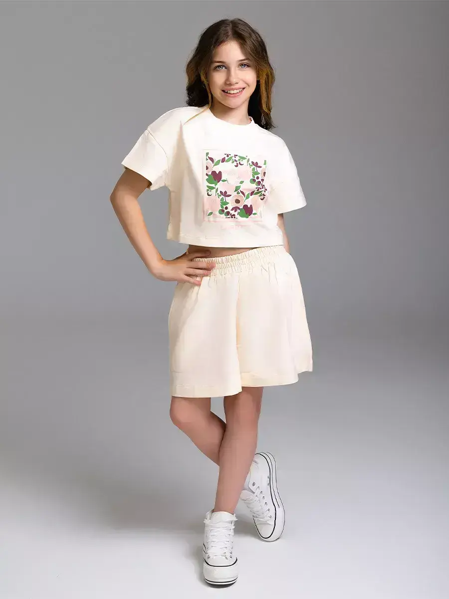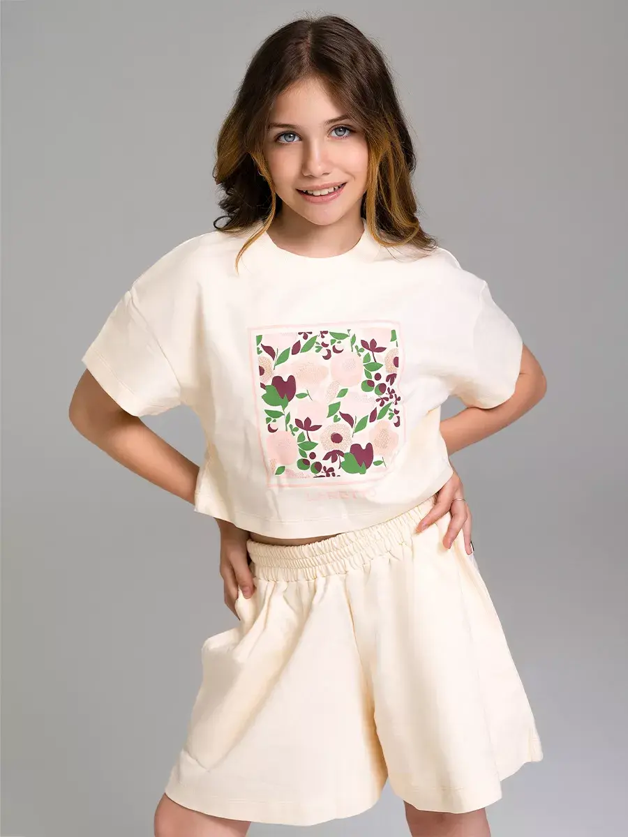 Яркие цвета и современный дизайн делают этот костюм для девочки стильным решением для любого гардероба. Шорты легко комбинируются с разными вещами, позволяя создавать модные образы.