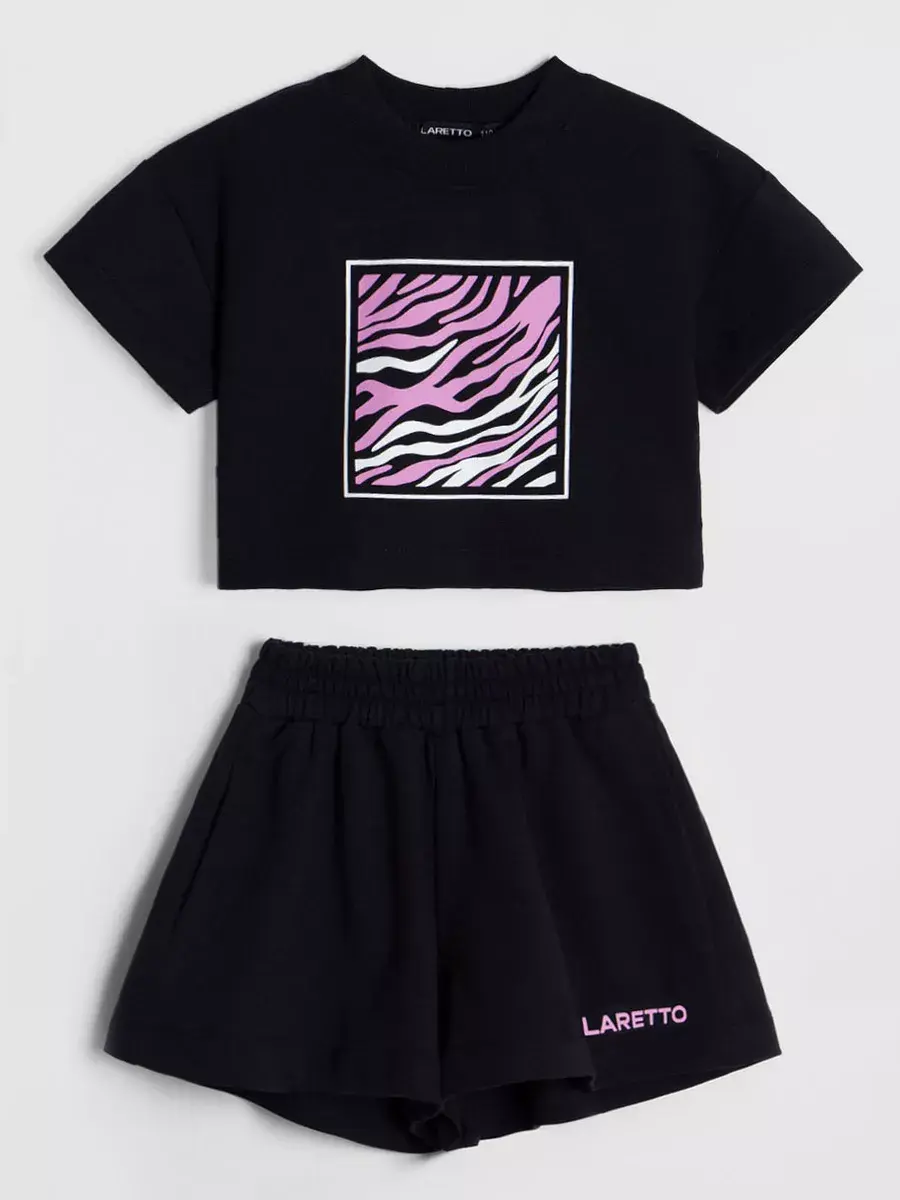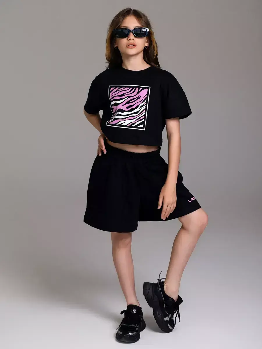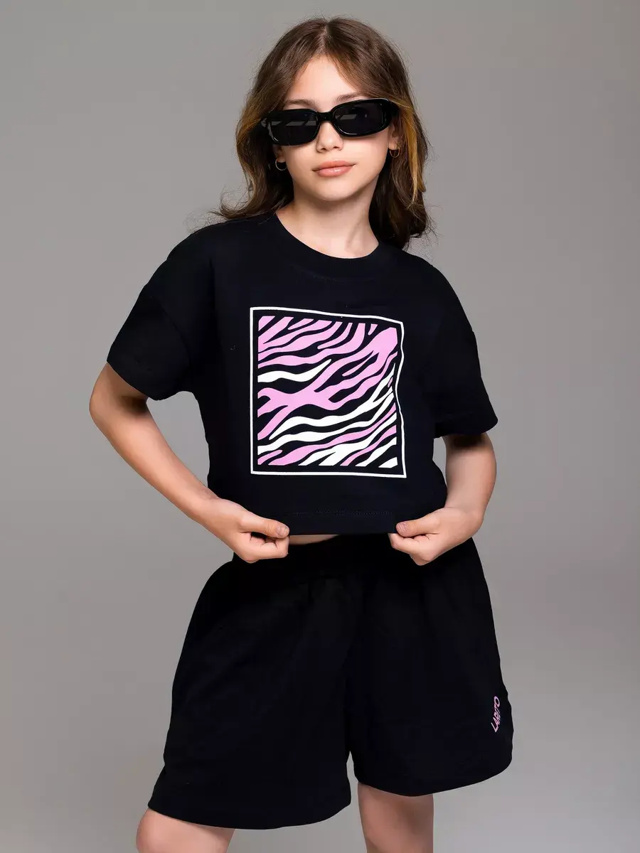 LRTT-675_/_00-0031922 _/_Футболка + шорты_черный_/_Девочки