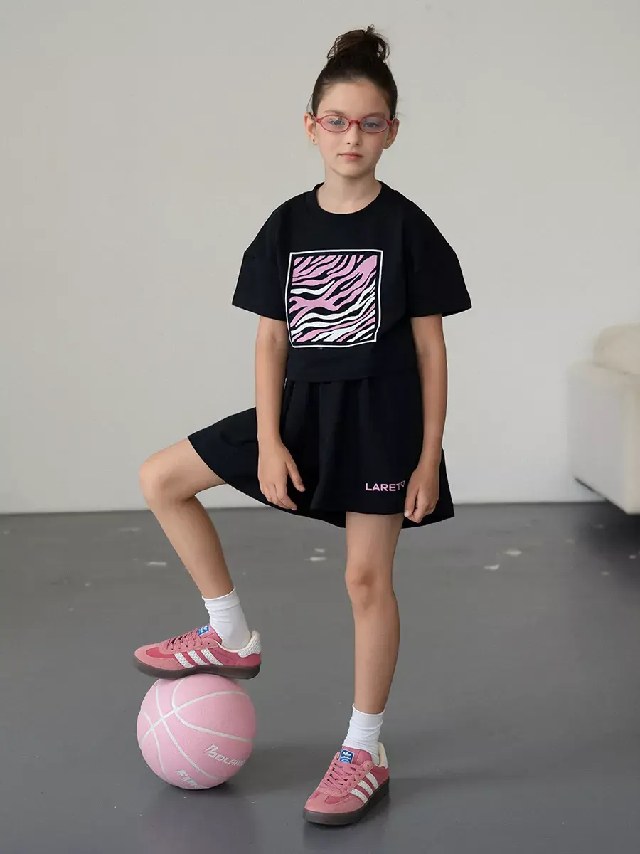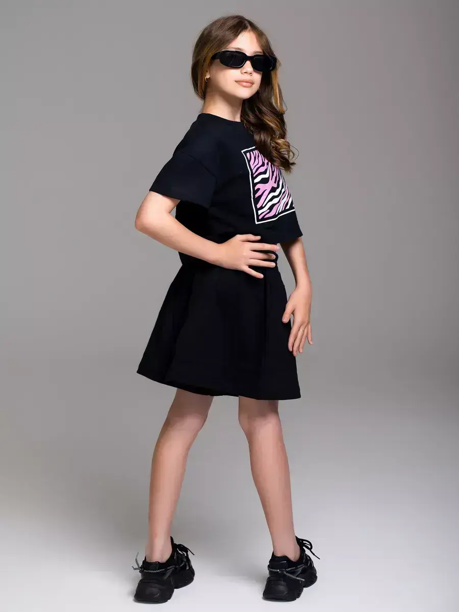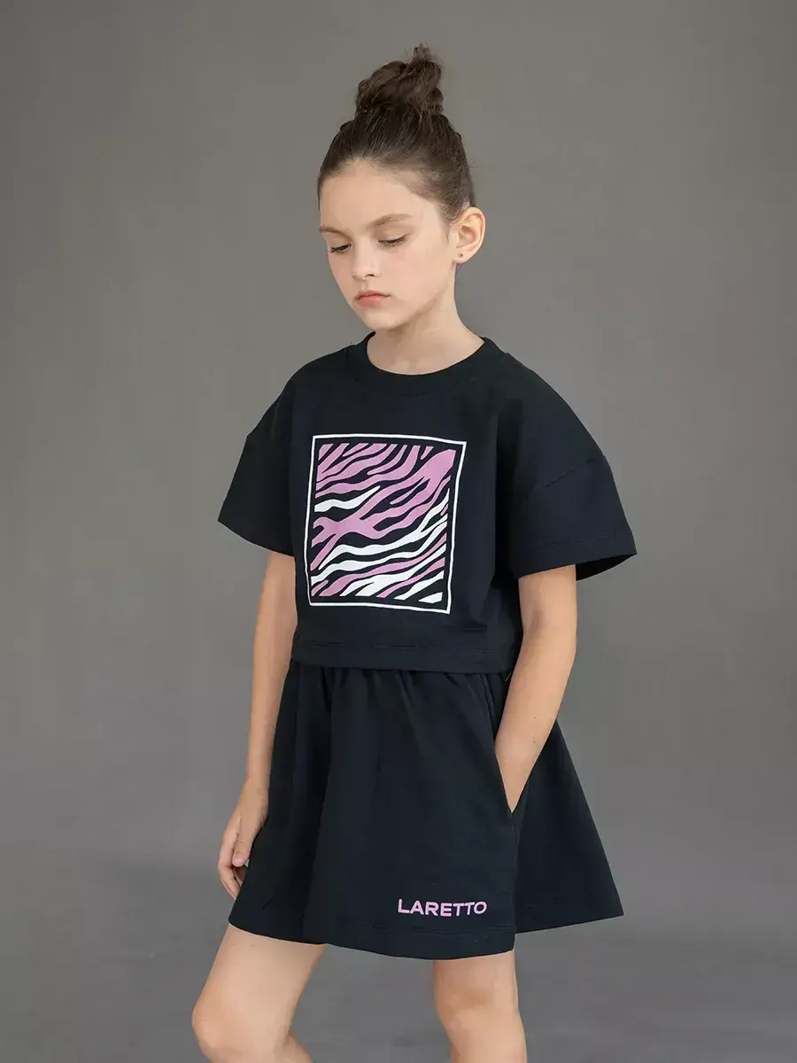 LRTT-675_/_00-0031922 _/_Футболка + шорты_черный_/_Девочки