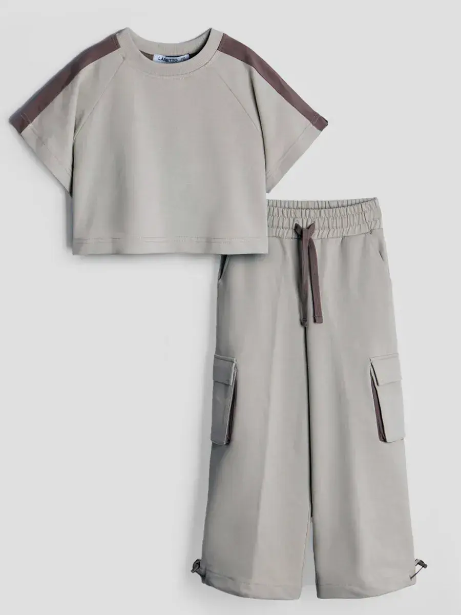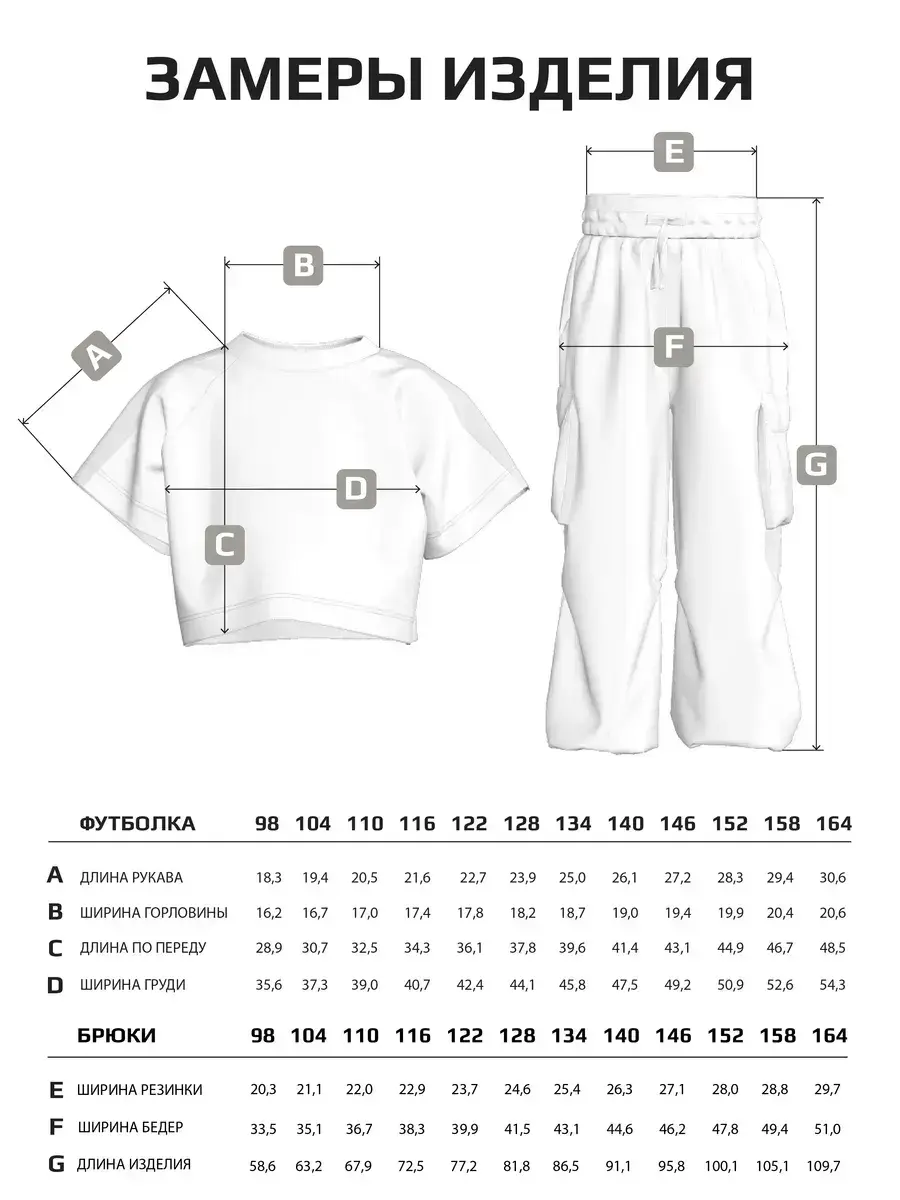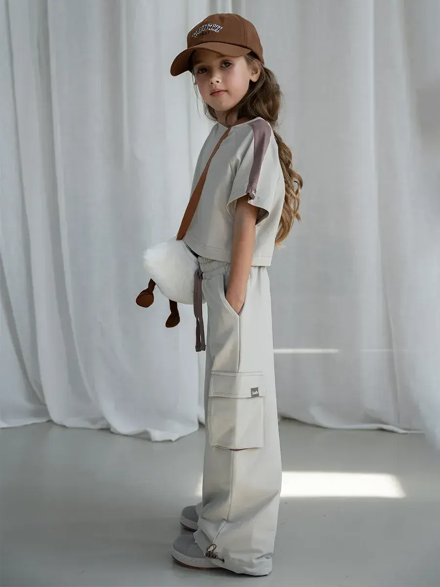 Костюм для девочек — идеальное сочетание стиля и комфорта. Детский комплект состоит из укороченной футболки для девочек и брюк на резинке. Каждый элемент летнего костюма для девочек создан с заботой о маленьких модницах, предпочитающих активный образ жизни.