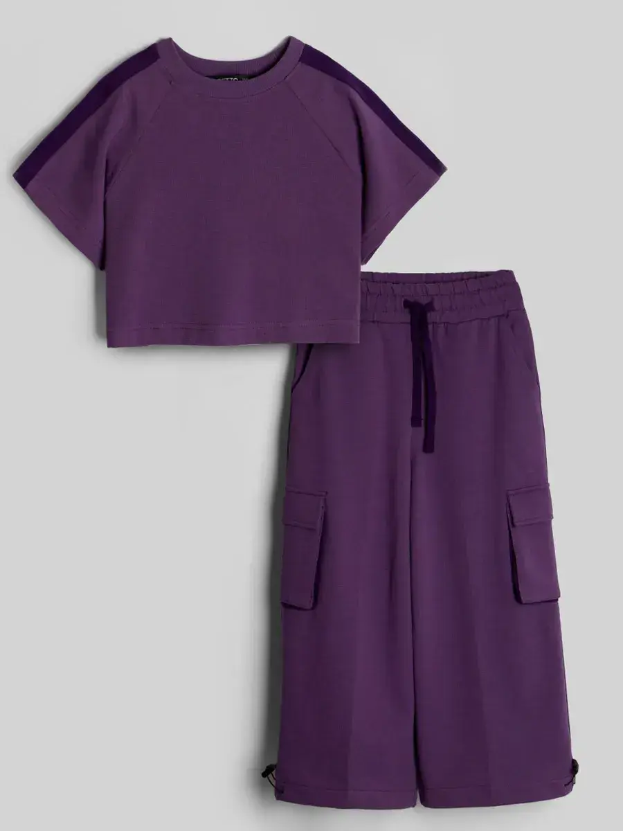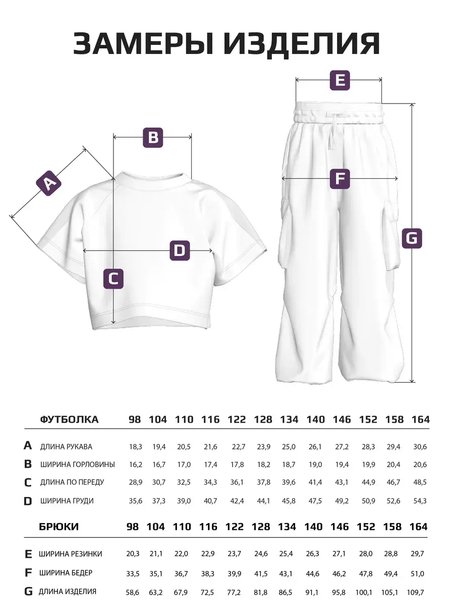 Костюм штаны и футболка для девочки - это стильный и комфортный комплект, который станет отличным выбором на каждый день. Укороченная футболка оверсайз и брюки кюлоты станут практичным вариантом для дома, отдыха, повседневной носки в садик и занятий спортом. Детская одежда с модным принтом выполнена из качественного хлопкового материала, который обеспечивает удобство, не стесняет движений и позволяет коже дышать.