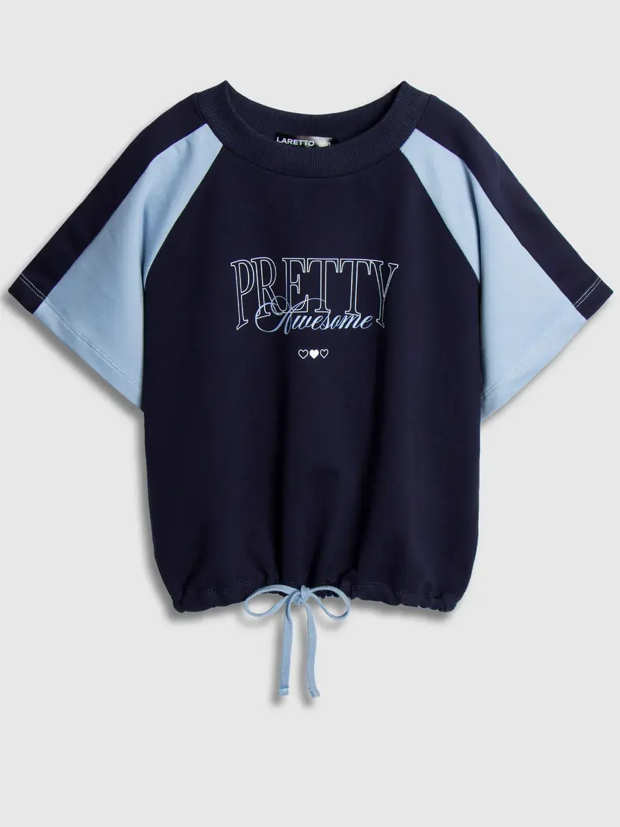 Демисезонный спортивный костюм для девочки — это идеальное сочетание стиля, комфорта и практичности. Комплект состоит из футболки на завязках и штанов на шнурках, что обеспечивает удобную посадку и свободу движений. Такой костюм для девочки прекрасно подойдёт для прохладной погоды в межсезонье, прогулок на улице, занятий спортом, посещения детского сада или школы.