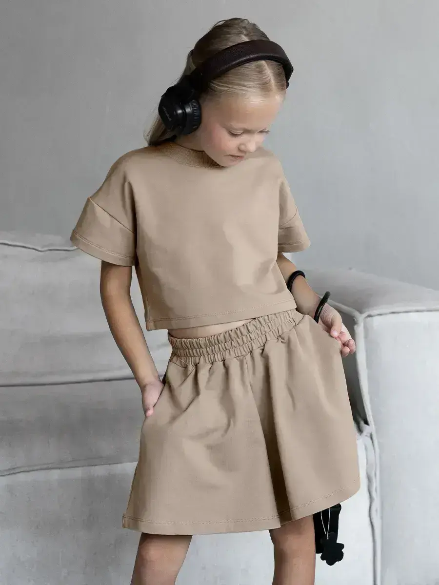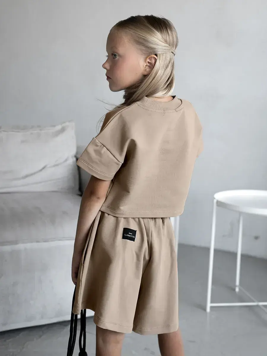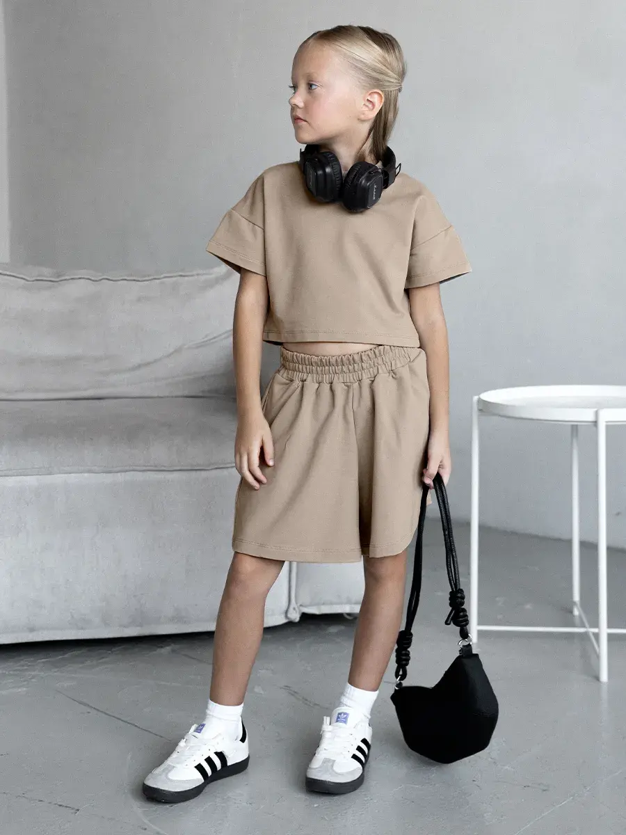 Летний костюм детский для девочки с шортами незаменим для подростков и малышей.