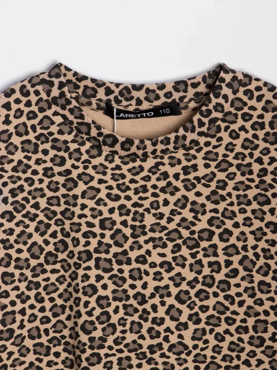 Леопардовый дизайн-модный принт, который подчеркнёт стиль вашей девочки. Мягкие материалы, идеально подходящие для повседневной носки, активных игр и занятий в садике или школе. Широкий размерный ряд от 98 до 164, подходит как для малышей, так и для подростков.