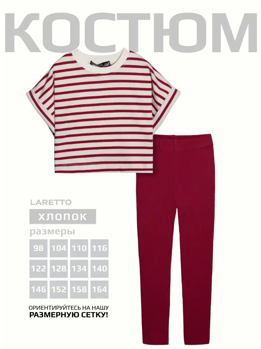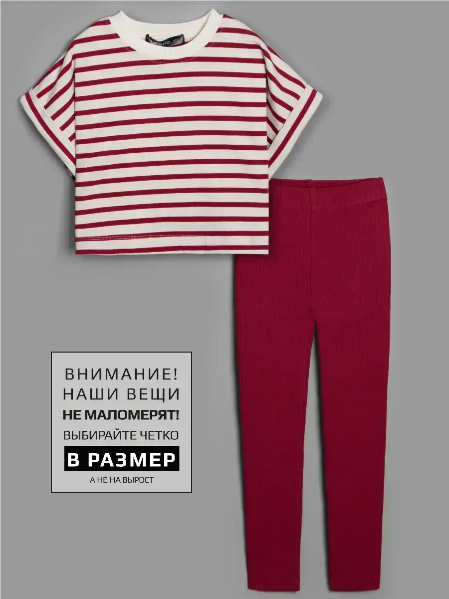 Представляем стильный и удобный костюм для девочки летний, состоящий из футболки и леггинсов в рубчик. Этот универсальный детский комплект идеально подходит как для малышей, так и для подростков, обеспечивая комфорт и свободу движений в любое время года. Футболка для девочки выполнена из мягкого трикотажного материала, который дышит и приятно ощущается на коже, а леггинсы обеспечивают отличную посадку и поддержку.