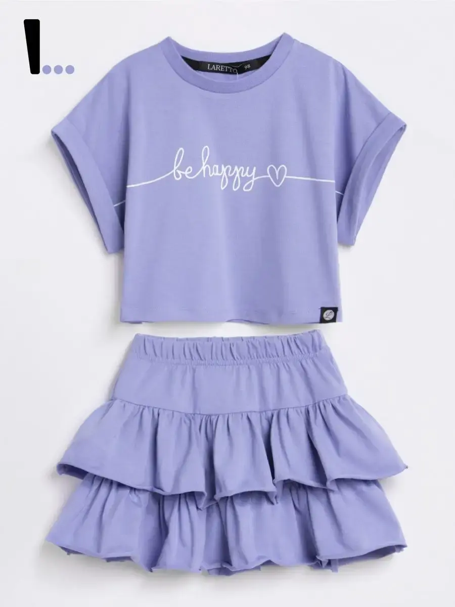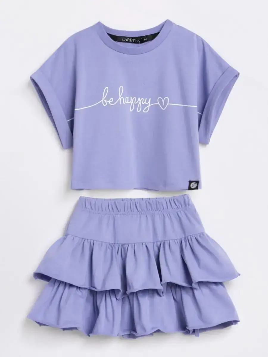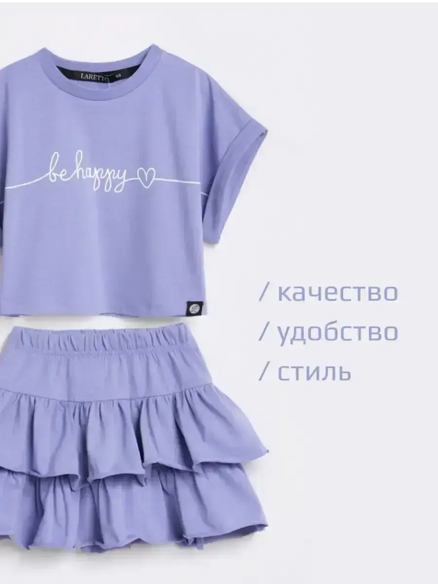 Летний костюм для девочки трикотажный непременно станет самым любимым в гардеробе каждой девочки! Футболка и шорты с воланами - это самый подходящий вариант для садика, активного отдыха, путешествий, похода в кино или на праздник. Повседневный комплект изготовлен из высококачественного трикотажа, который приятен к телу и практически не ощутим во время носки. Юбка на резинке отлично держит форму и подчеркивают силуэт. Кофта с коротким рукавом прекрасно сочетается с любым низом в гардеробе. Нарядный комплект хорошо подойдет для праздничного торжества или фотосессии. Данная модель рассчитана как для малышей, так и подростков. Вся коллекция вещей для детей от бренда LARETTO - это идеальное сочетание стиля, качества и доступной цены! Для того чтобы детская одежда радовала Вас дольше, очень важно соблюдать рекомендации по уходу за ним (бережная стирка при t не более 30С). При выборе изделия ориентируйтесь на таблицу в карточке товара. Не упустите возможность приобрести эту качественную вещь для вашего ребенка уже сегодня!Й