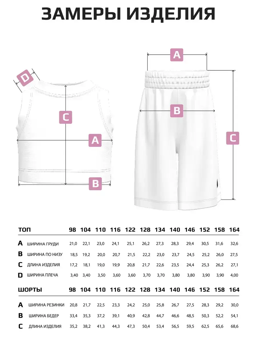 Костюм для девочек включает в себя модный топ и комфортные шорты, которые подойдут как для активного отдыха, так и для повседневной носки. Летний костюм для девочки идеально подходит для маленьких модниц и юных спортсменок.
