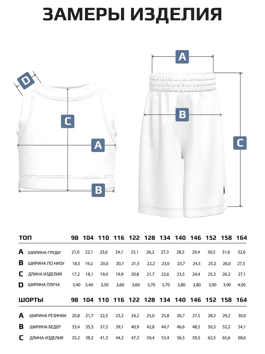 Костюм для девочек включает в себя модный топ и комфортные шорты, которые подойдут как для активного отдыха, так и для повседневной носки. Летний костюм для девочки идеально подходит для маленьких модниц и юных спортсменок.