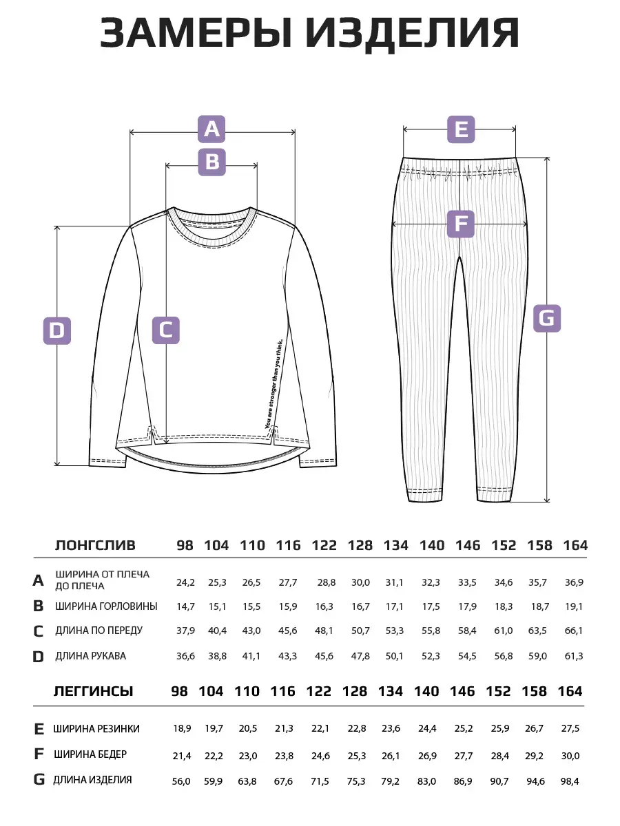Спортивный костюм для девочек, который сочетает в себе стиль, комфорт и качество. Этот трикотажный детский костюм состоит из удобного лонгслива и модных леггинсов, которые подарят вашей малышке свободу движений в прохладные осенние дни.