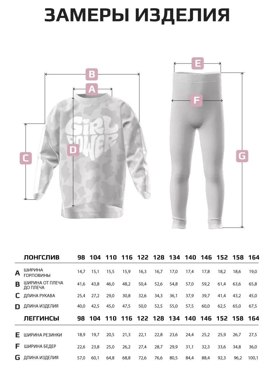 Костюм для девочки, состоящий из лонгслива и леггинсов - это идеальный выбор для любого случая. Костюм детский сочетает в себе удобство, стиль и функциональность, именно то, что необходимо каждому активному ребенку.