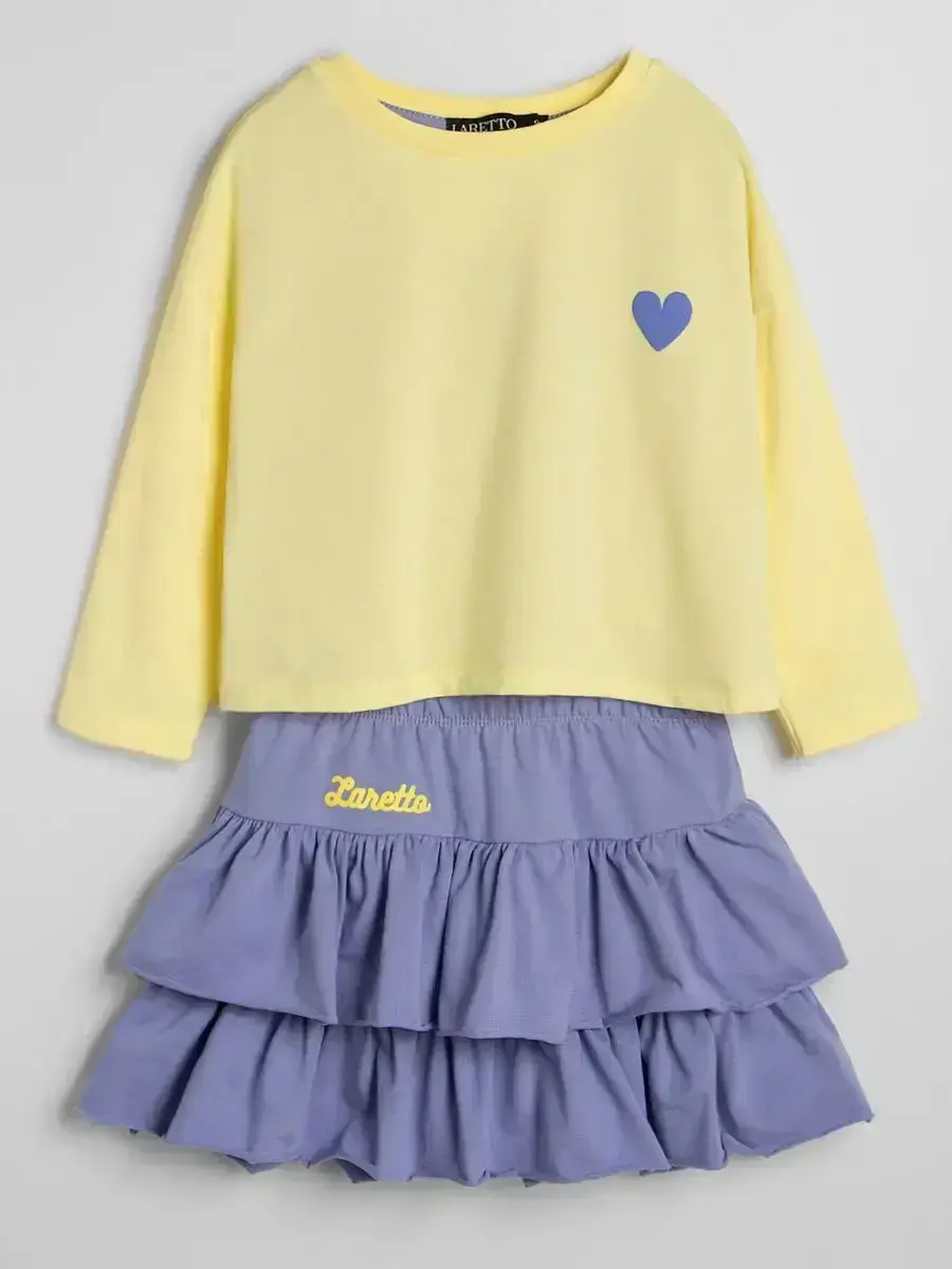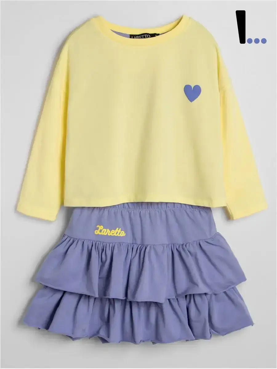 Представляем вам осенний костюм для девочек, который сочетает в себе стиль, комфорт и качество. Этот трикотажный детский костюм состоит из удобного лонгслива и юбки с воланами, которые подарят вашей малышке свободу движений в прохладные осенние дни.