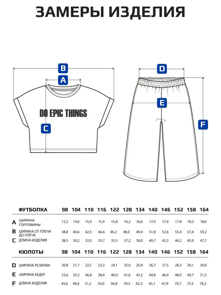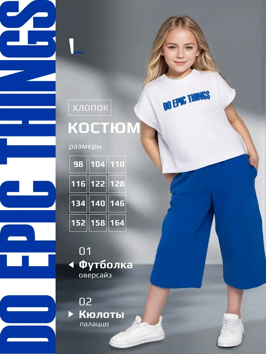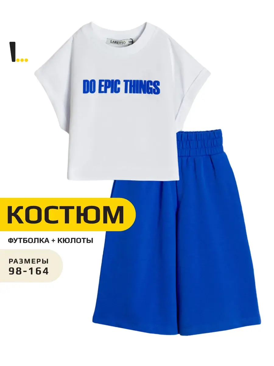 Яркие цвета и современный дизайн делают этот костюм для девочки стильным решением для любого гардероба. Кюлоты легко комбинируются с разными вещами, позволяя создавать модные образы.