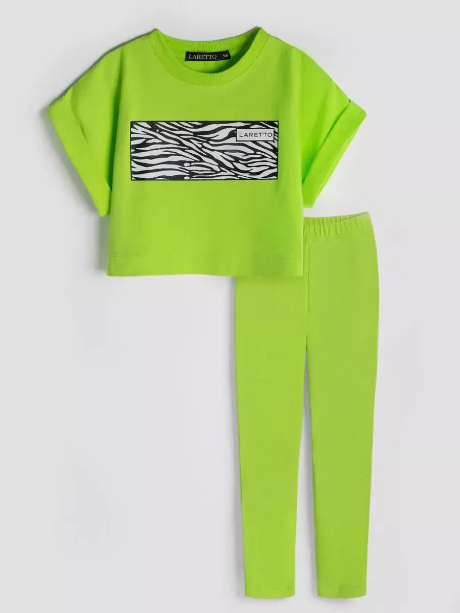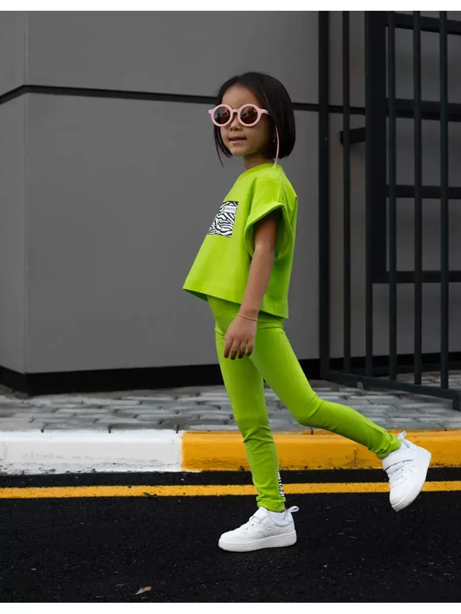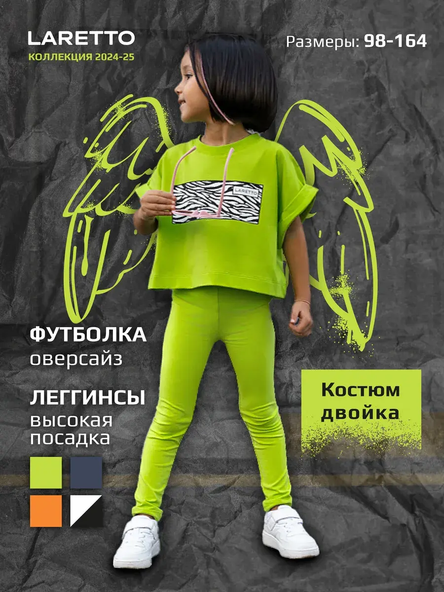 Яркие цвета и современный дизайн делают этот костюм для девочки стильным решением для любого гардероба. Леггинсы легко комбинируются с разными вещами, позволяя создавать модные образы.