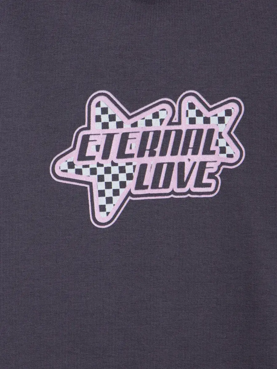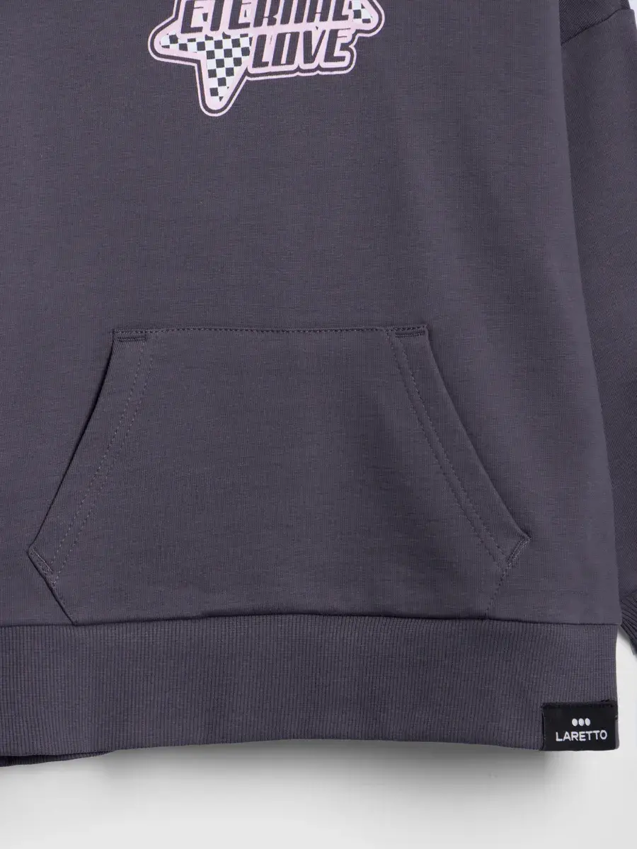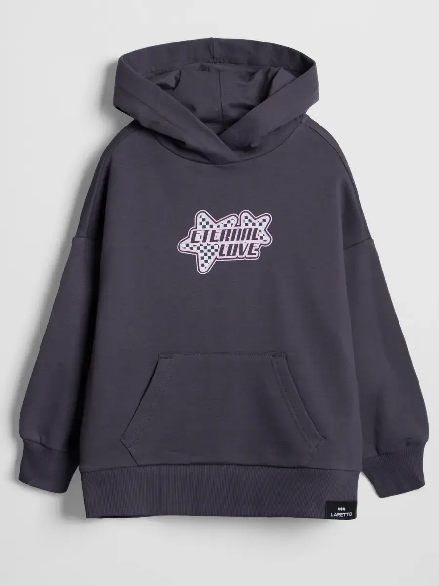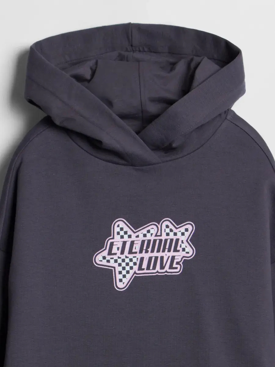 Толстовка выполнена из мягкого и приятного на ощупь материала в стиле Y2K, который обеспечивает тепло и комфорт в прохладную погоду. Ее свободный крой позволяет легко сочетать толстовку для девочки с различными элементами гардероба. Удобные манжеты на рукавах и резинка по низу свитшота обеспечат идеальную посадку и защиту от ветра вашего ребенка. Стильный принт дополнит образ .