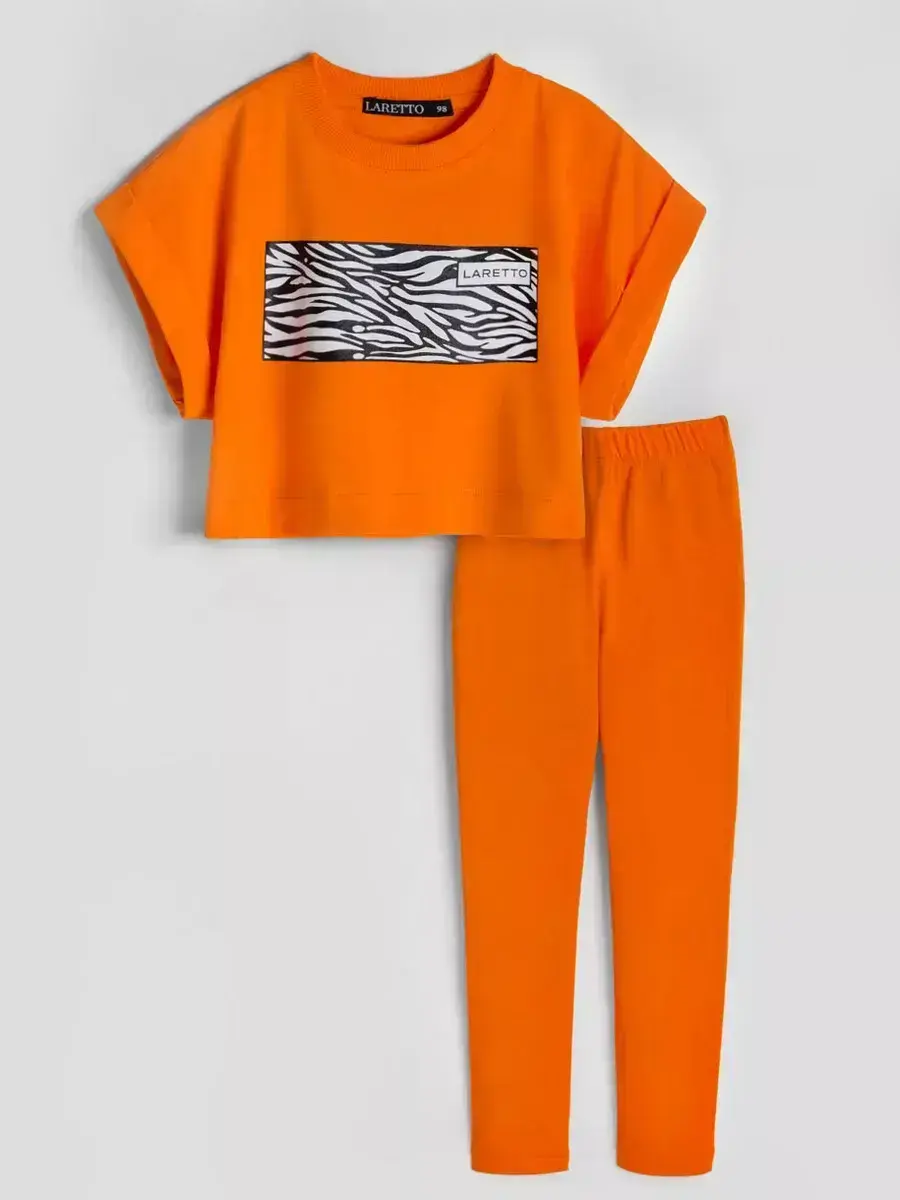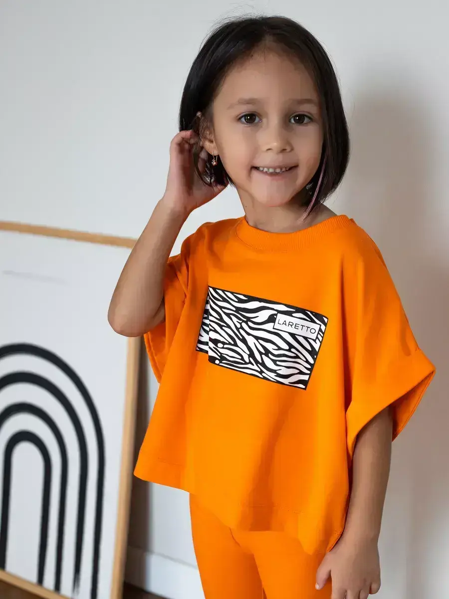 Яркие цвета и современный дизайн делают этот костюм для девочки стильным решением для любого гардероба. Леггинсы легко комбинируются с разными вещами, позволяя создавать модные образы.