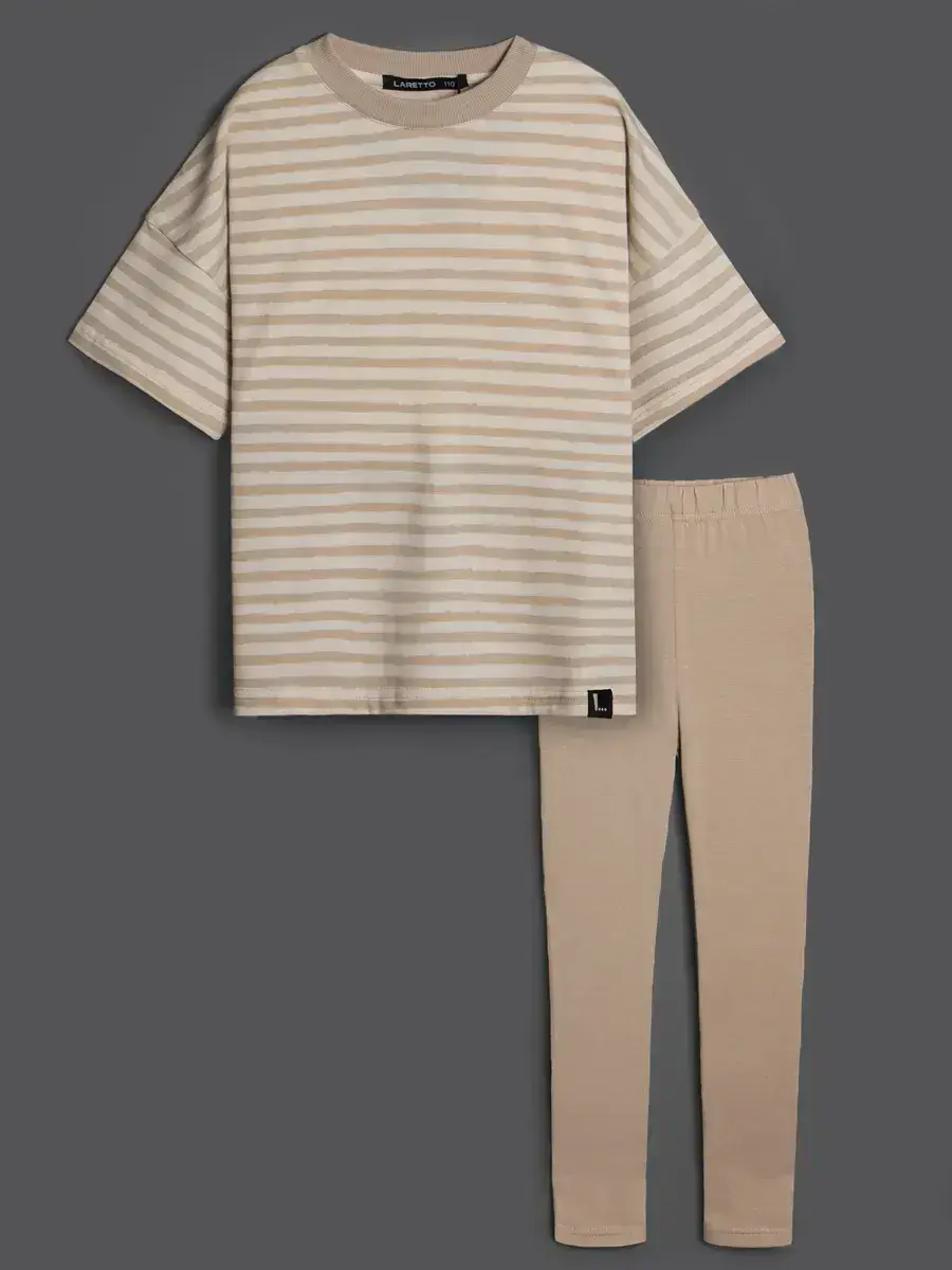 LRTT-595/00-0032142/Футболка + леггинсы/Бежевый