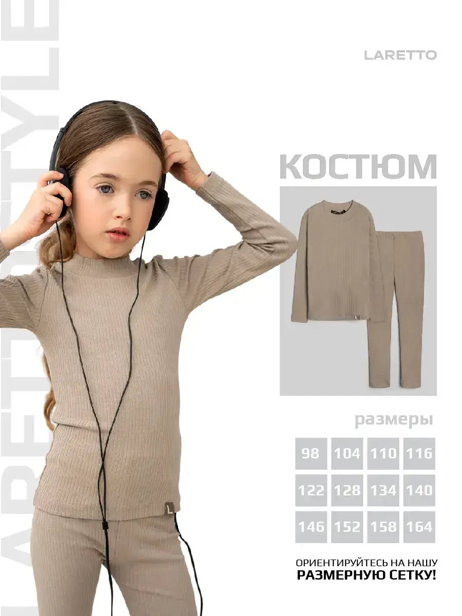 Представляем стильный и удобный костюм для девочки, состоящий из лонгслива и леггинсов в рубчик. Этот универсальный детский комплект идеально подходит как для малышей, так и для подростков, обеспечивая комфорт и свободу движений в любое время года. Футболка для девочки выполнена из мягкого трикотажного материала, который дышит и приятно ощущается на коже, а леггинсы в рубчик обеспечивают отличную посадку и поддержку.