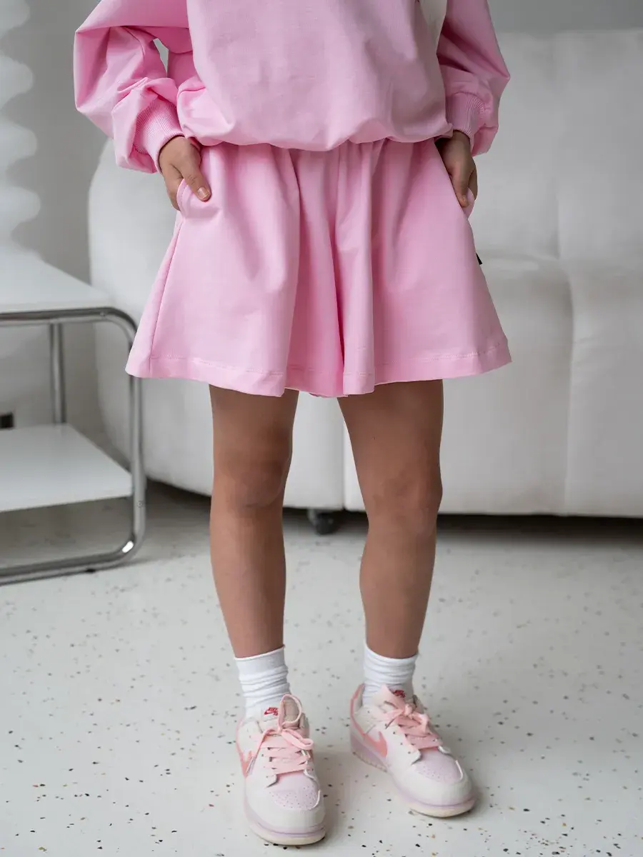 Нарядный костюм для девочки — это идеальное сочетание стиля, комфорта и практичности на каждый день или особый случай. Этот детский костюм для девочки выполнен в формате костюма-двойки: стильный верх и оригинальная юбка-шорты, которые смотрятся как юбка, но при этом остаются максимально удобными для активных игр и движения.