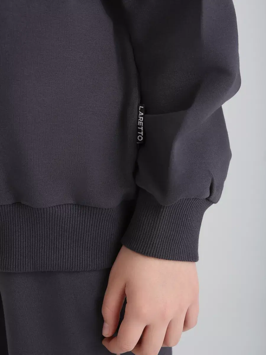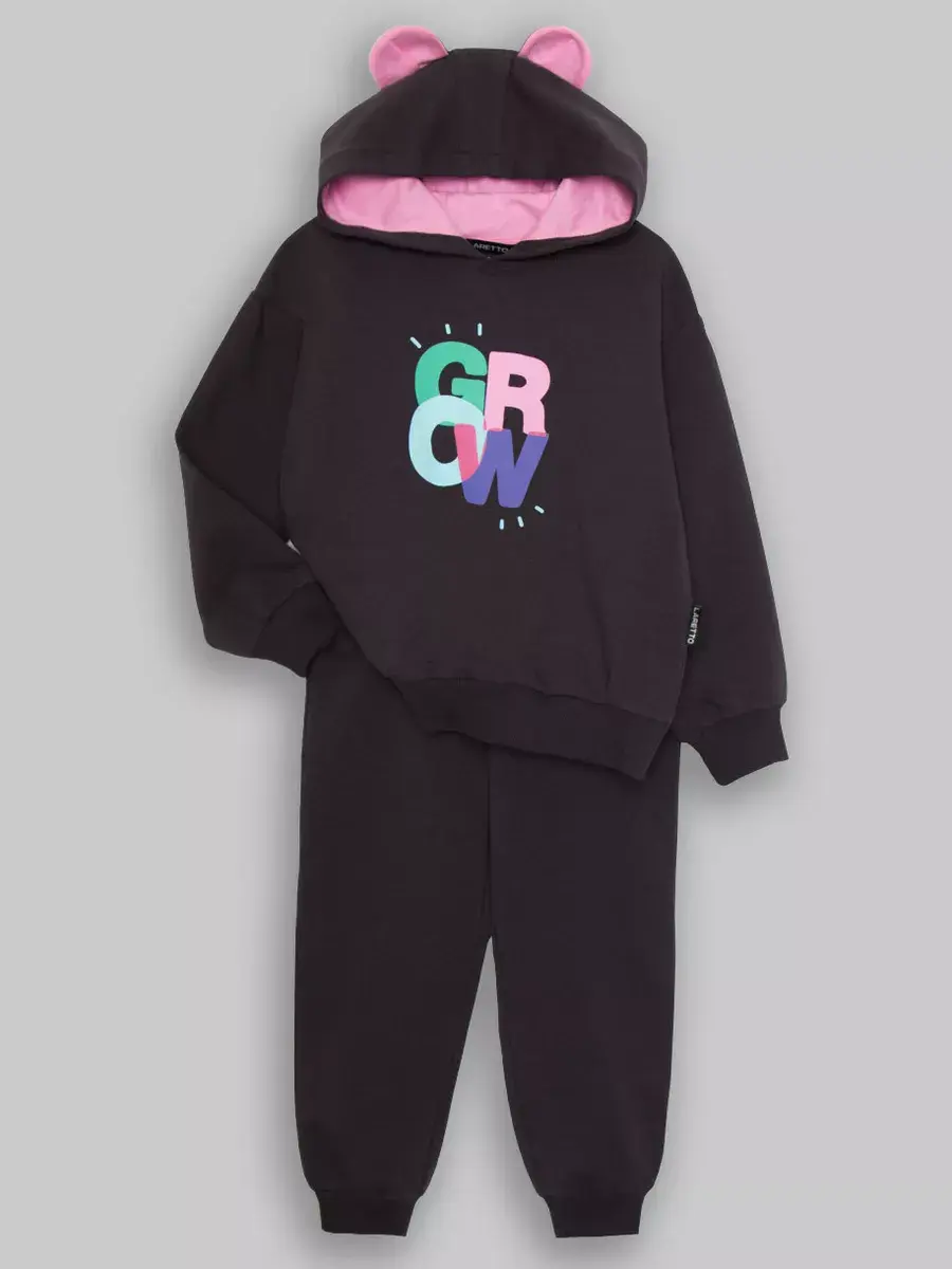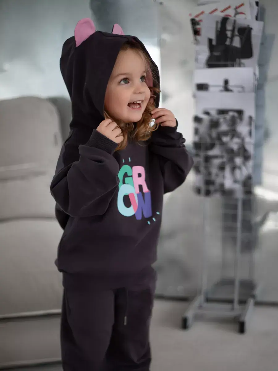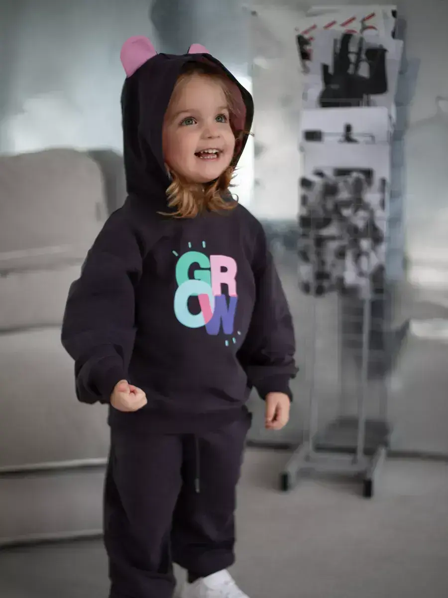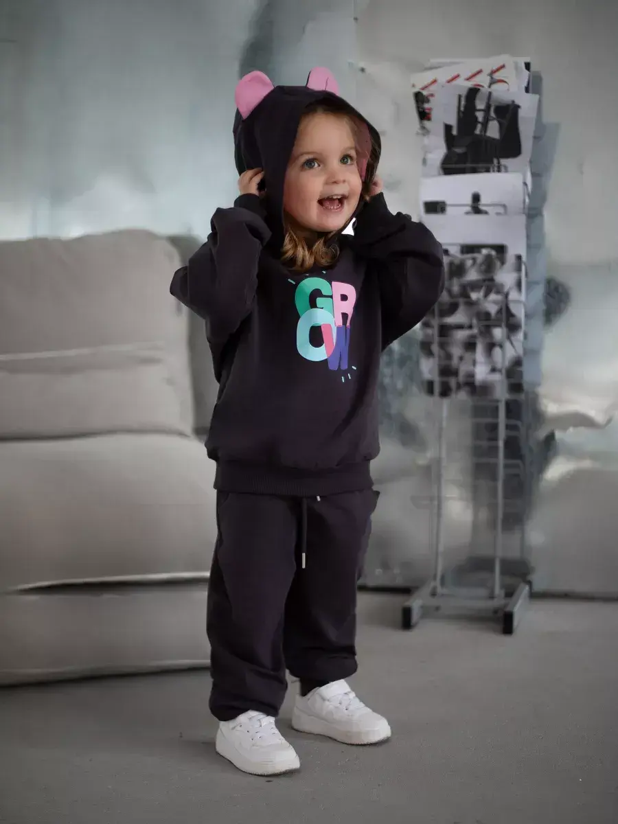 Стильный и современный спортивный костюм для девочек. Состоит из уютного худи и модных брюк джоггеров. Этот темно-серый комплект детский идеально сочетает в себе комфорт и актуальные тренды, что делает его отличным выбором для активных дней, прогулок и отдыха.