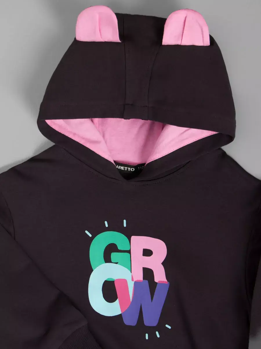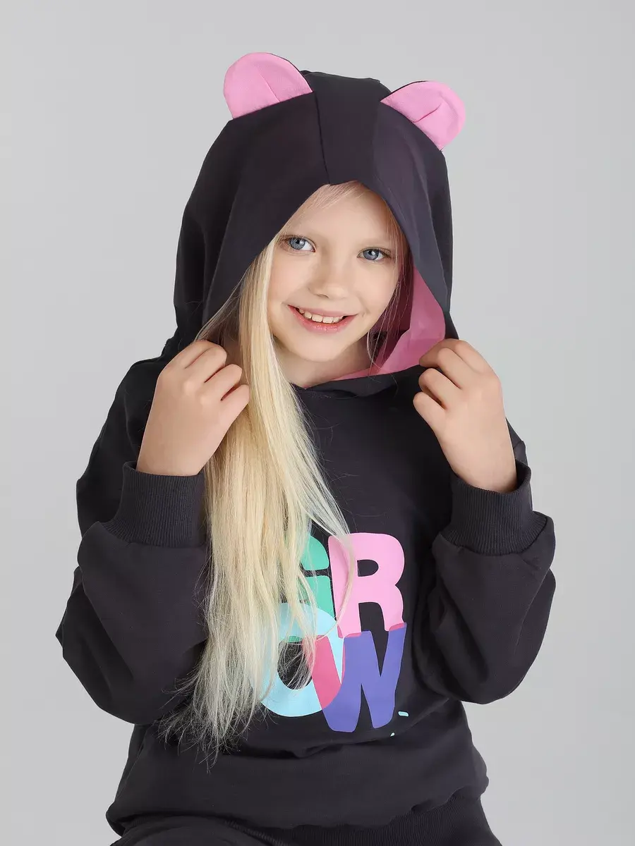 Худи для девочки выполнен из мягкого и приятного на ощупь материала, который обеспечивает тепло и комфорт в прохладную погоду. Его свободный крой позволяет легко сочетать толстовку для девочки с различными элементами гардероба. Удобные манжеты на рукавах и резинка по низу свитшота обеспечат идеальную посадку и защиту от ветра вашего ребенка.