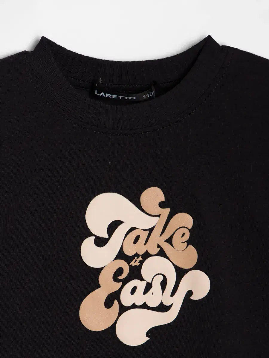 Костюм на прогулку для девочки легко сочетается с кроссовками, босоножками, джинсовкой или кардиганом, позволяя создавать стильные и удобные образы. Яркие цвета и современный дизайн делают комплект модным и привлекательным, а простота ухода за материалом порадует родителей — ткань сохраняет форму и цвет даже после многократных стирок.