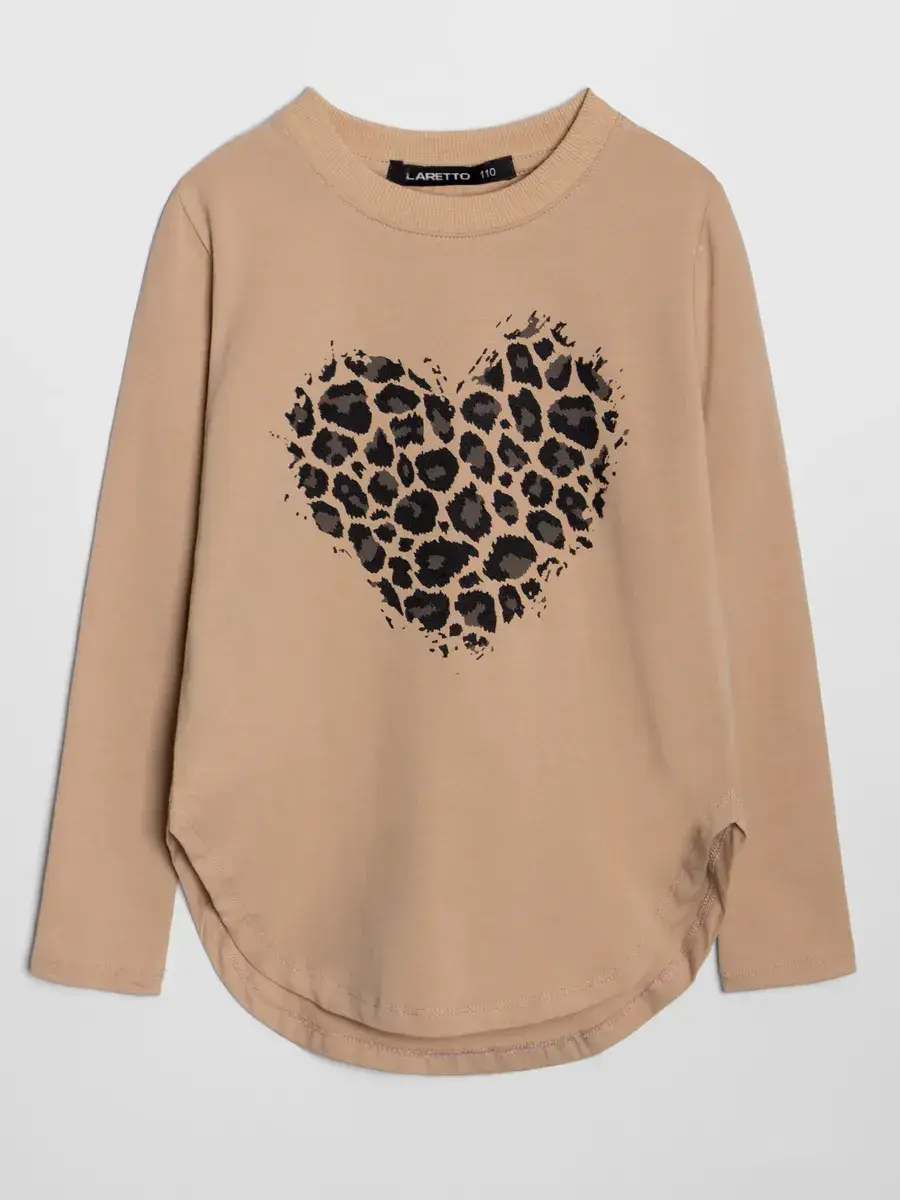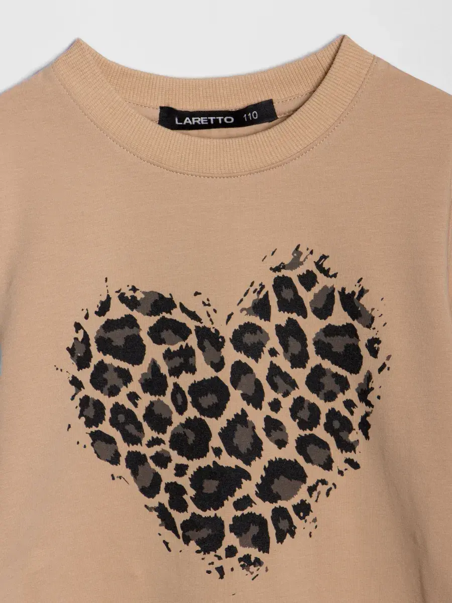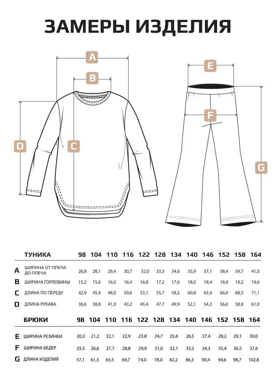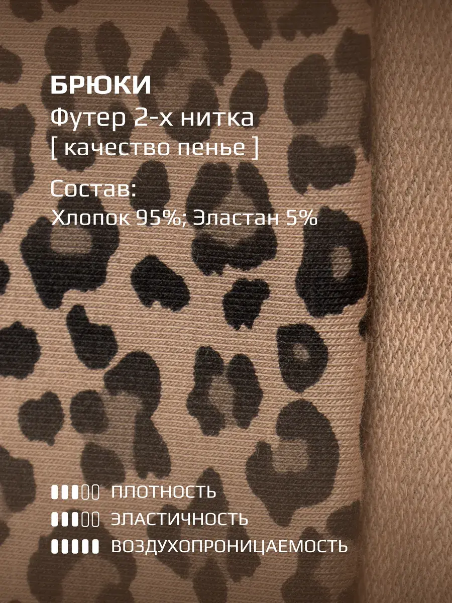 Костюм для девочек, который сочетает в себе стиль, комфорт и качество. Этот трикотажный детский костюм состоит из удобной бежевой туники и модных леопардовых брюк, которые подарят вашей малышке свободу движений в прохладные дни.