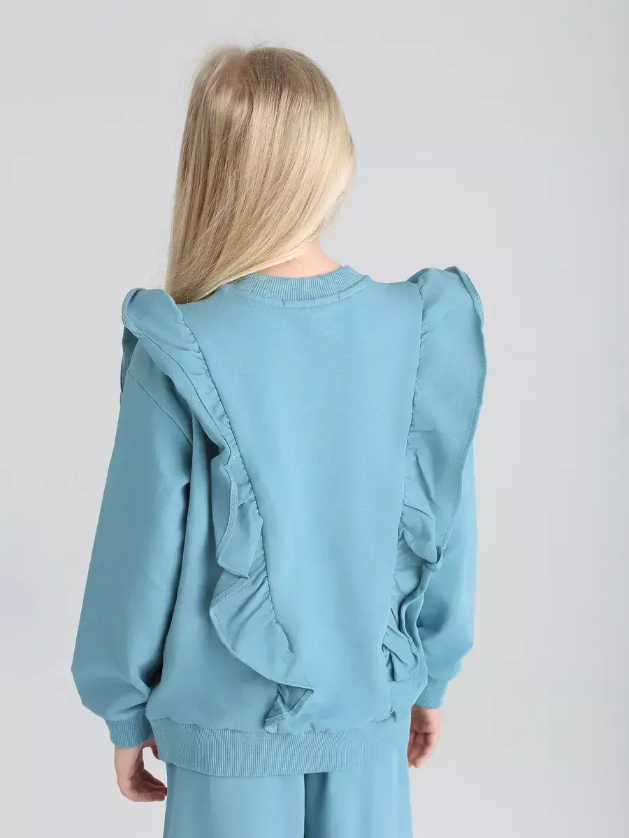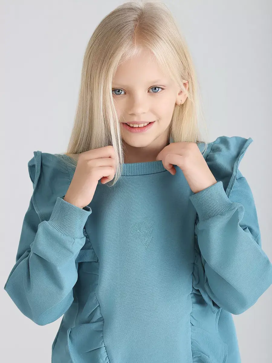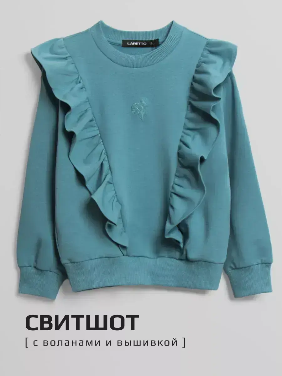 Свитшот с воланами создан специально для тех, кто хочет следовать модным тенденциям. Это универсальная комфортная одежда, которую легко стилизовать и выглядеть при этом неотразимо!