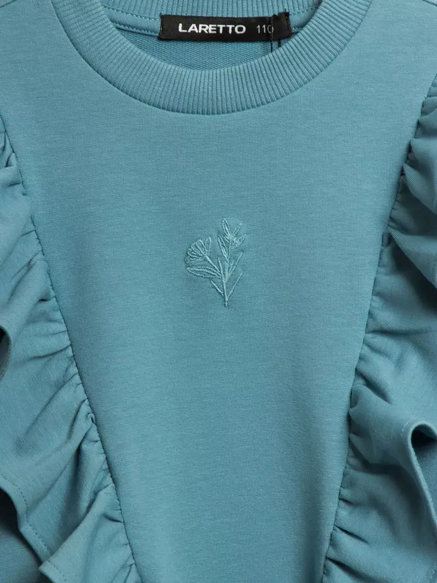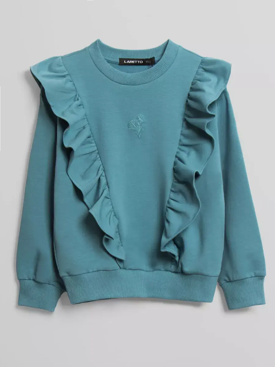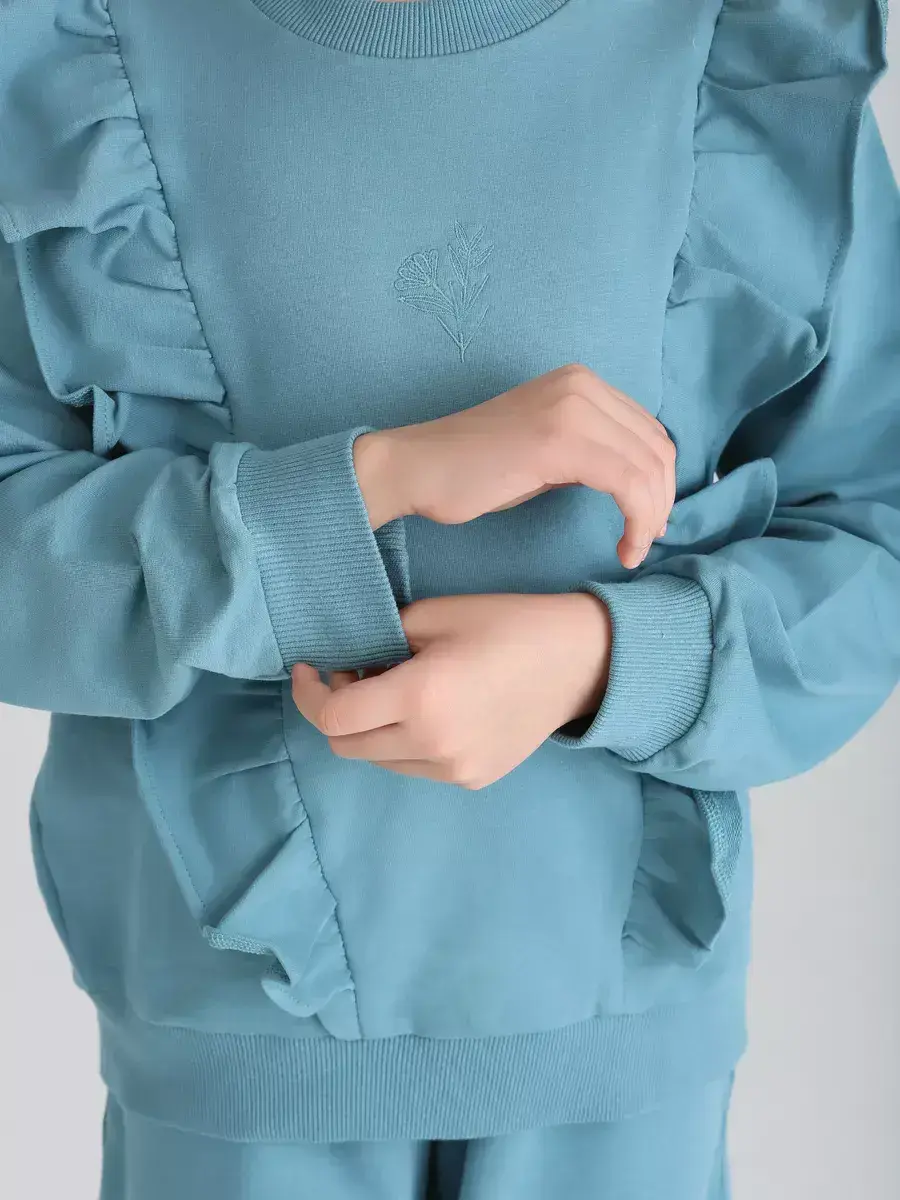 Свитшот с воланами создан специально для тех, кто хочет следовать модным тенденциям. Это универсальная комфортная одежда, которую легко стилизовать и выглядеть при этом неотразимо!