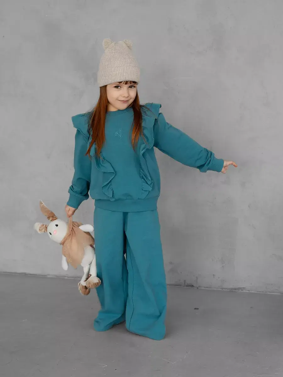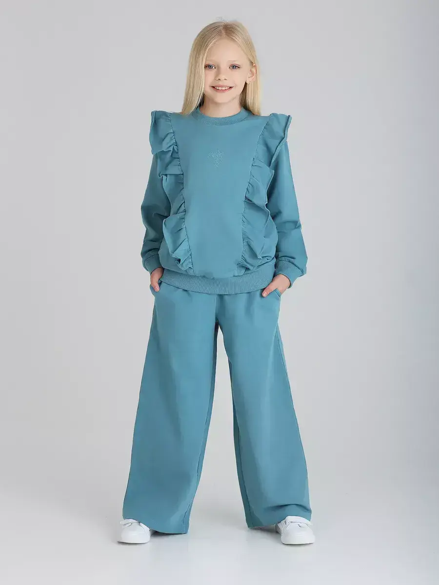 Идеальный крой, удобная посадка и современный дизайн спорт шик непременно придется по вкусу не только малышкам, но и подросткам. Актуальные расцветки хорошо сочетаются с любым гардеробом и верхней одеждой. Стильные брюки палаццо делают образ нарядным и модным.