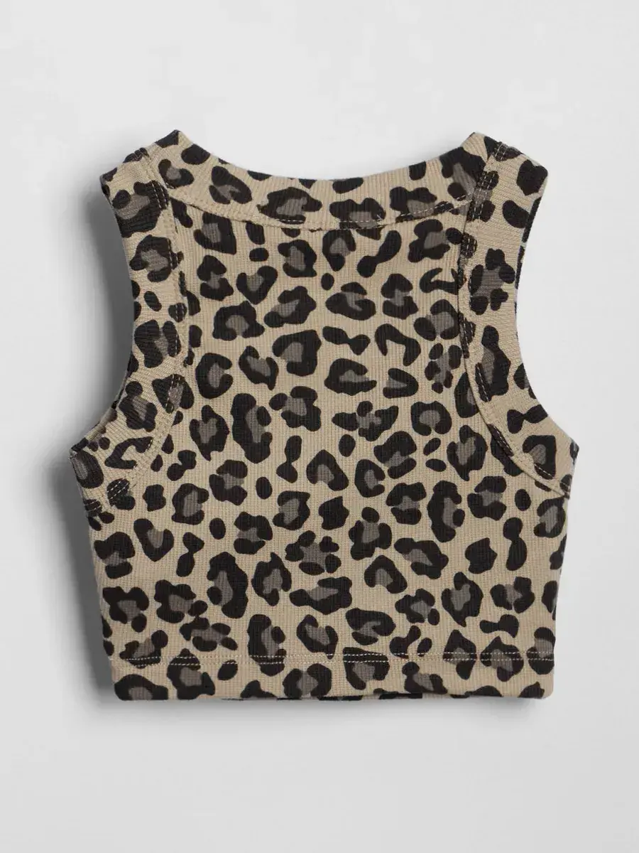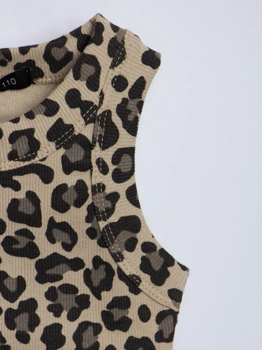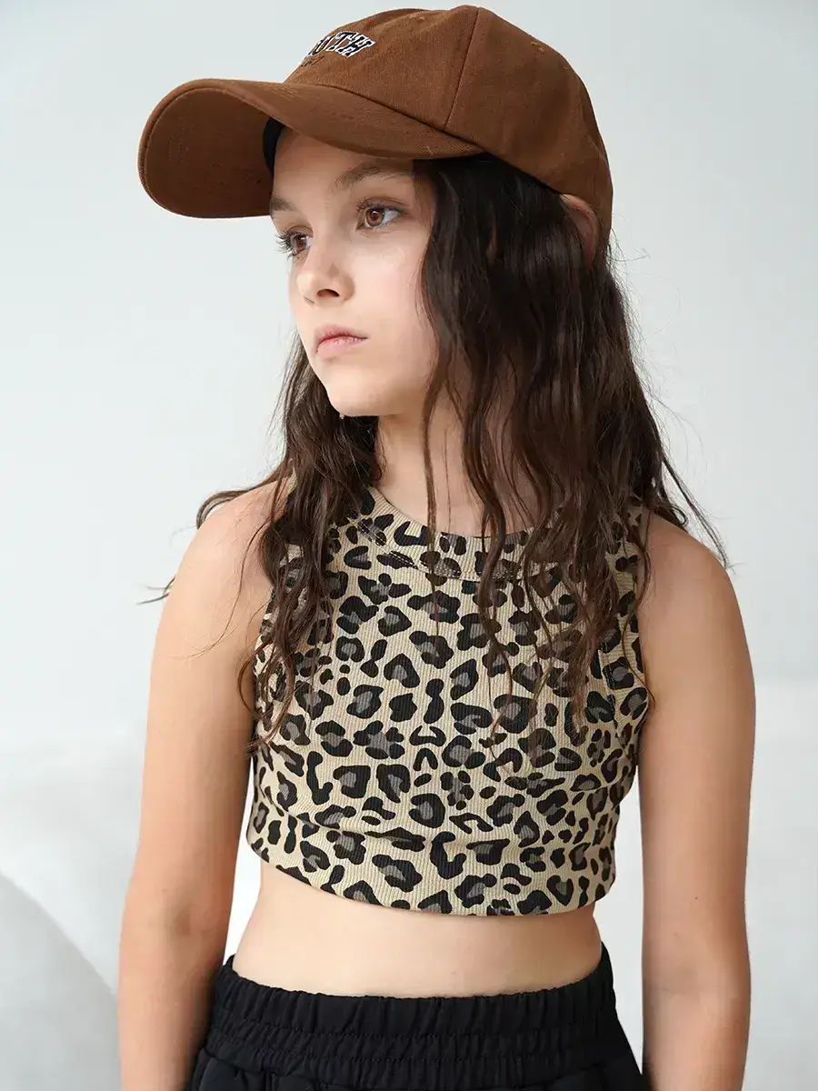 Топ для девочек с леопардовым принтом выполнен из качественного материала, который обеспечивает комфортное ношение даже в самые жаркие летние дни. Благодаря эластичной ткани топ не сковывает движения, позволяя ребенку чувствовать себя свободно.